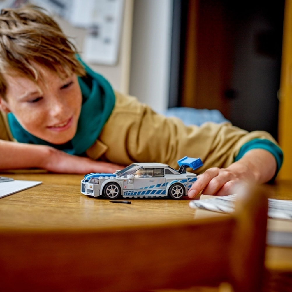 Questo modello della Nissan Skyline GT-R (R34) LEGO Speed Champions (76917) è ispirato all’iconica auto del film 2 Fast 2 Furious. I bambini dai 9 anni in su, gli amanti delle auto e i fan del famoso franchise cinematografico potranno dedicarsi a una costruzione gratificante prima di esporre con orgoglio quest’auto giocattolo o ricreare le scene delle gare su strada. Un fantastico regalo per gli amanti delle auto Questo giocattolo Fast & Furious è ricco di dettagli autentici, tra cui l’iconica livrea sulla fiancata, l’alettone sul retro, la griglia anteriore, i grandi passaruota e una tanica di carburante nitro sul sedile del passeggero. È presente anche una minifigure di Brian O’Conner da posizionare sul sedile del pilota, per consentire ai fan dell’auto di divertirsi con un gioco di ruolo pieno d’azione. Una divertente esperienza digitale per gli appassionati LEGO Utilizzando l’app LEGO Builder per ingrandire, ruotare e visualizzare il modello, i costruttori grandi e piccoli possono dare vita alla loro creazione su tablet o smartphone, provando un gratificante senso di realizzazione