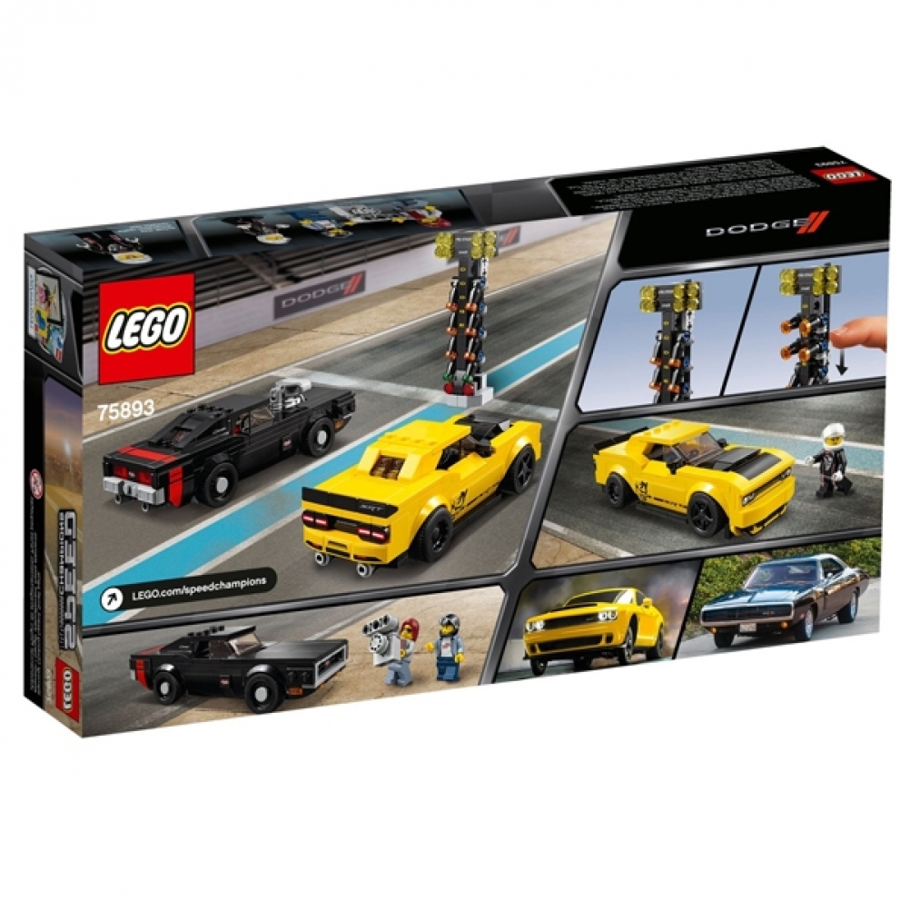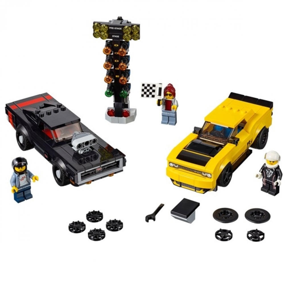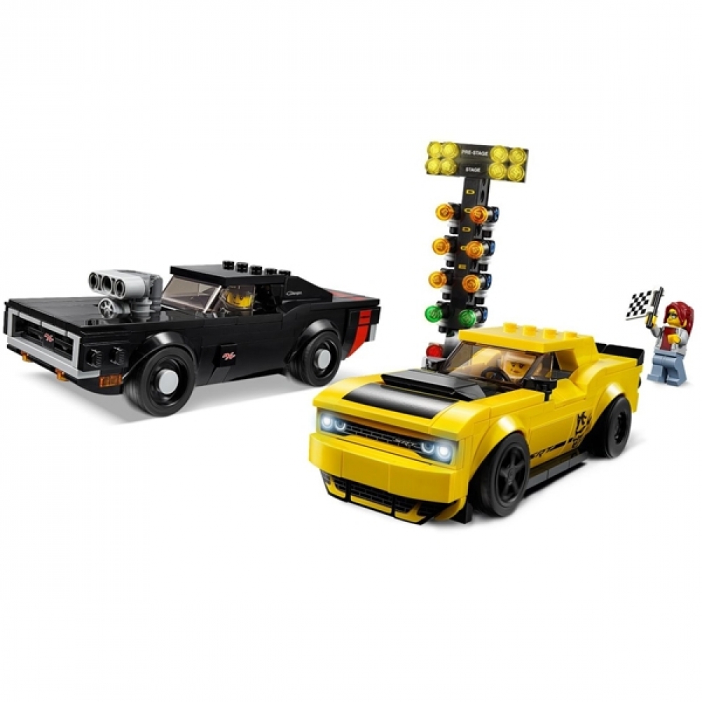 La Dodge Challenger è dotata di 2 set di cerchi, design autentico e adesivi decorativi, mentre la versione LEGO della Dodge Charger, un'iconica muscle car americana, è dotata di supercharger rimovibile e di cofano alternativo.