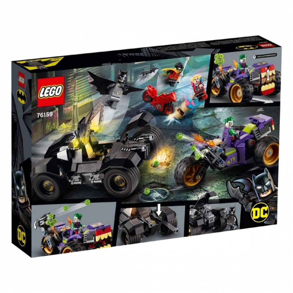 Il set di gioco All’inseguimento del tre-ruote di Joker LEGO® DC Batman™ (76159), con auto iconiche, armi potenti e i personaggi più amati dei film di Batman™, è perfetto per i bambini che amano l’azione di Batman™ contro THE JOKER™.