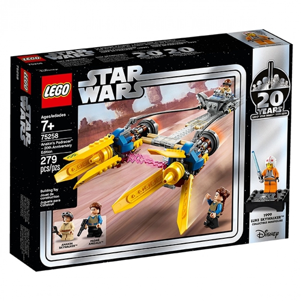 Celebra 20 anni di set LEGO® Star Wars™ con lo Sguscio di Anakin 75258. Questa reinterpretazione del modello originale 7131, lanciato nel 1999, è dotato di grandi motori, flap estensibili, spazio nella cabina di pilotaggio per la minifigure di Anakin e una maniglia che consente di ricreare le gare di Star Wars: La minaccia fantasma.