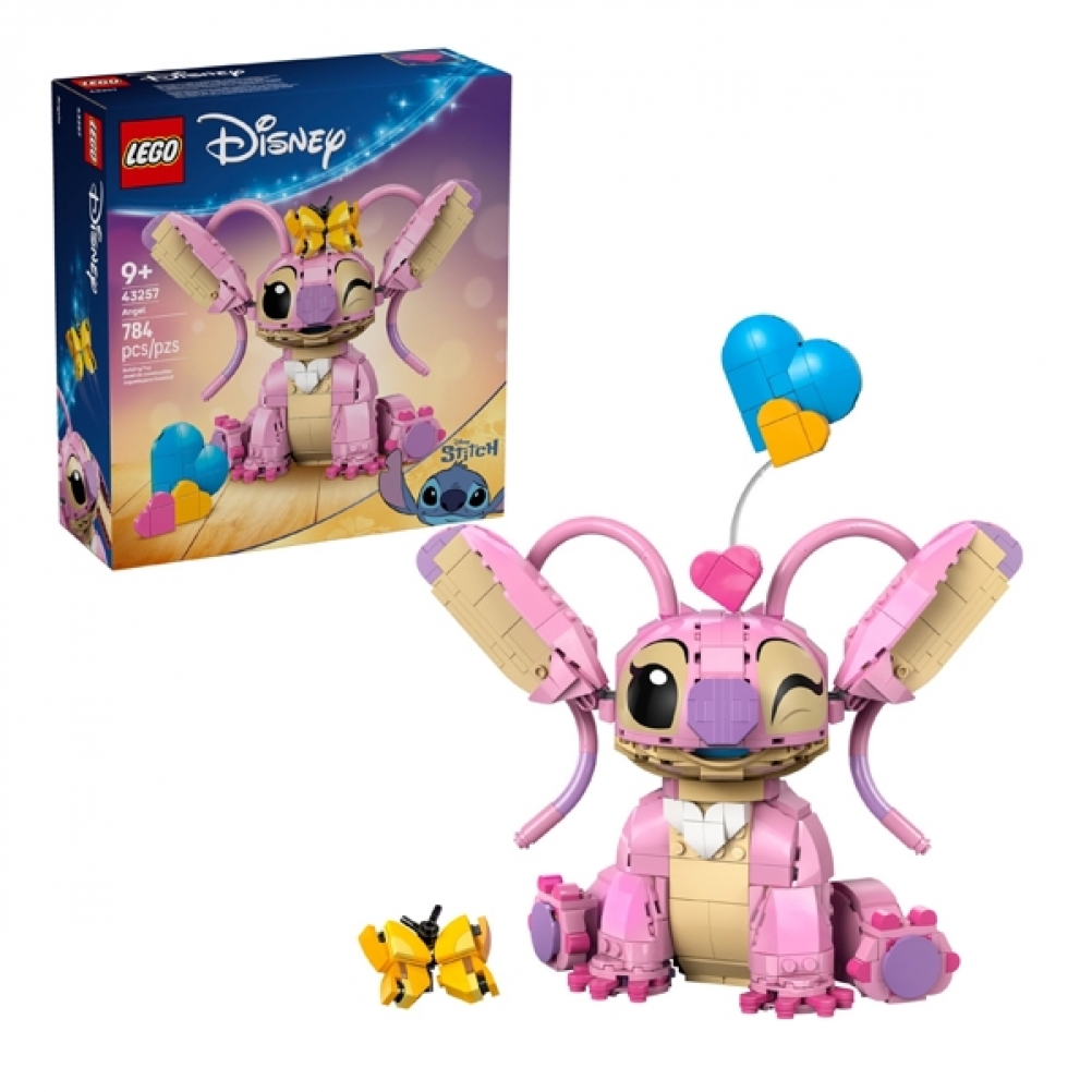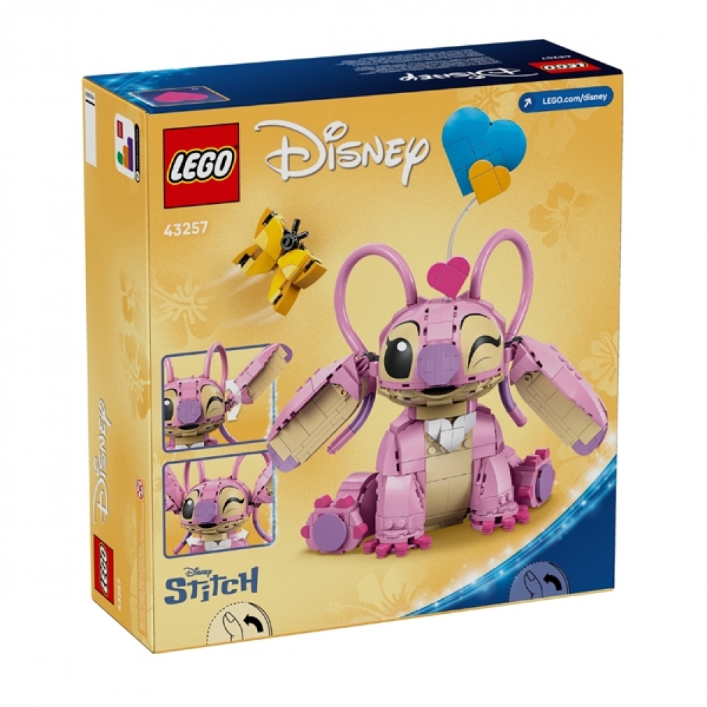 - Cosa c’è nella scatola: questo set da costruzione LEGO® ? Disney contiene un personaggio di Angel della serie televisiva Disney Lilo e Stitch una farfalla e 3 cuori “fluttuanti” da costruire e utilizzare come decorazione