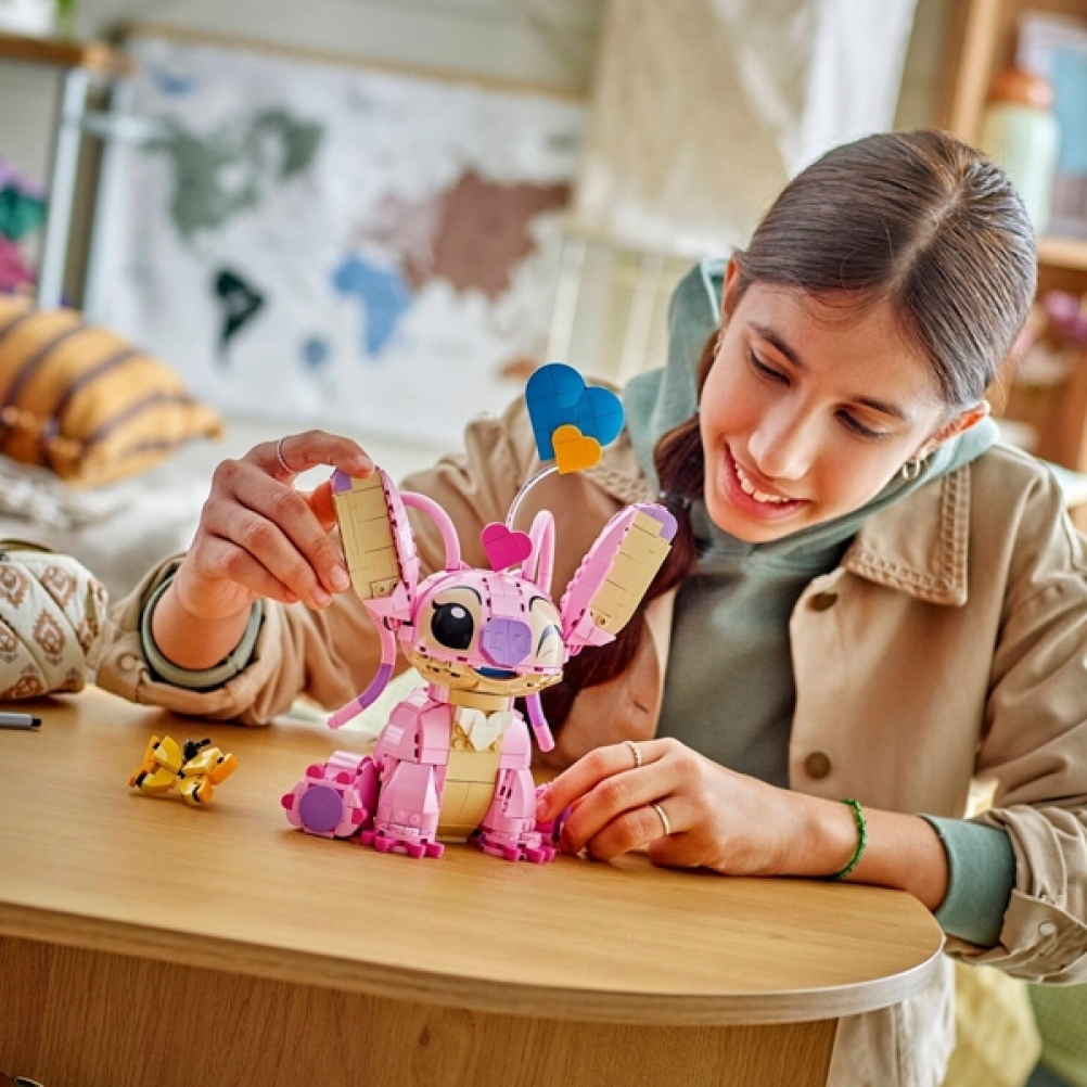 - Display LEGO® ? Disney: crea Angel Disney, poi decorala con cuori “fluttuanti” o una farfalla, muovi la testa e le orecchie in diverse pose ed espressioni e quindi esponila
