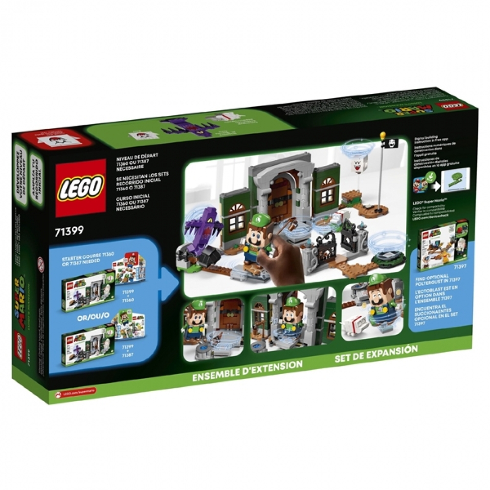 - Divertimento spettrale nella Luigi’s Mansion™: il set Atrio di Luigi’s Mansion™ - Pack di Espansione (71399) permette di aggiungere all’universo LEGO® Super Mario™ un ingresso della villa realizzato in mattoncini e un cimitero ricco di sfide
