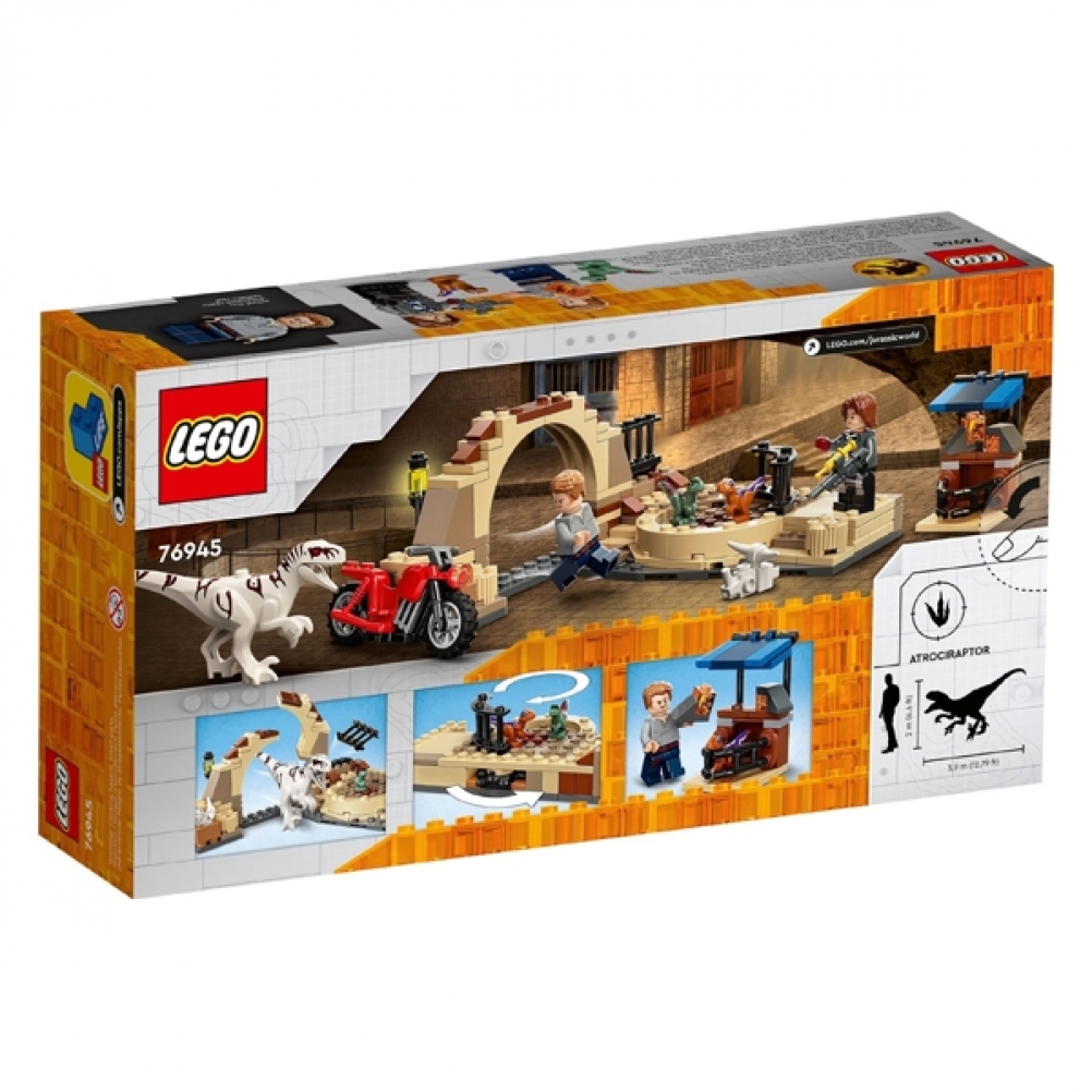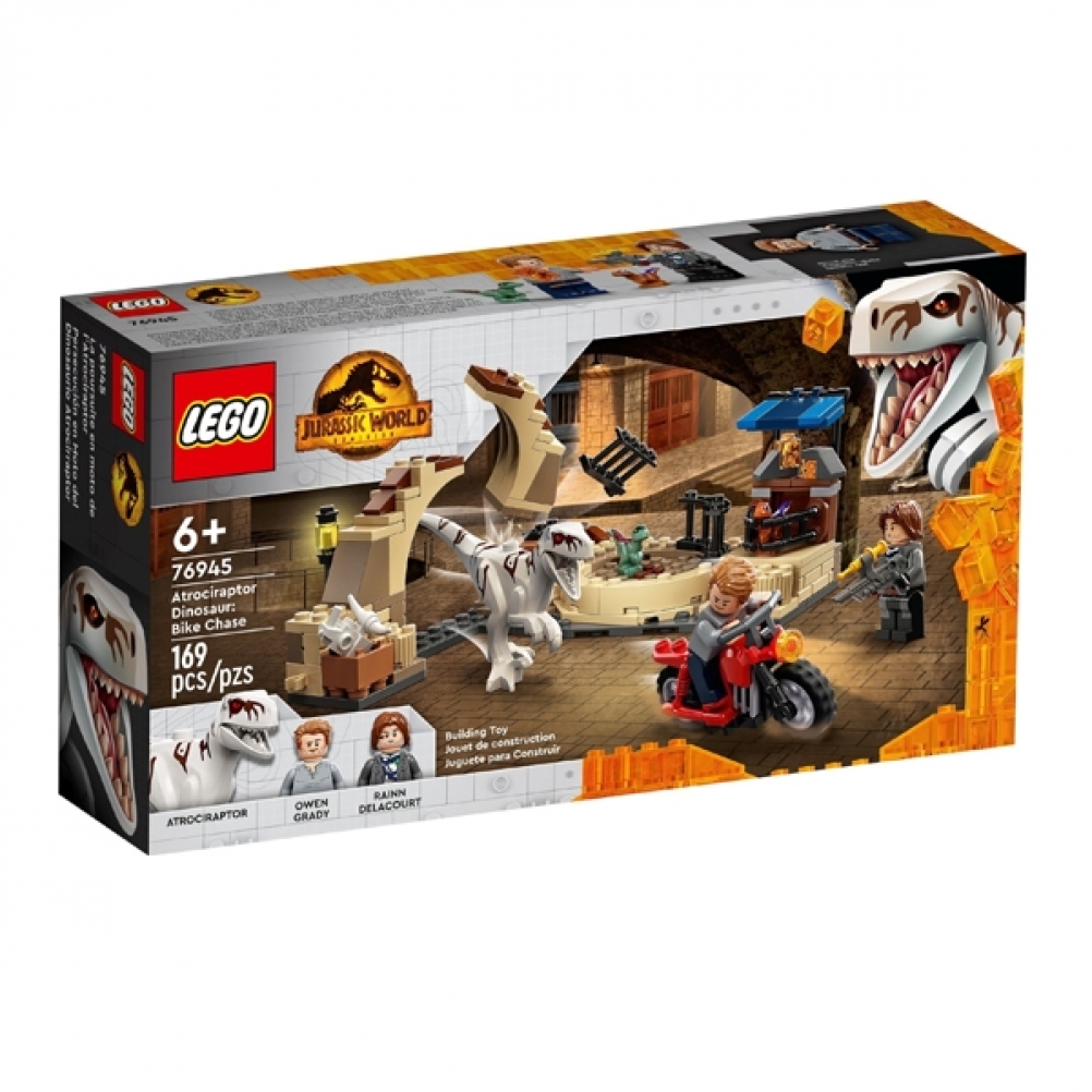 - Playset con dinosauri e motocicletta giocattolo: i bambini possono rivivere le avventure del film Jurassic World Dominion con questo playset di costruzione Atrociraptor: inseguimento sulla moto (76945).