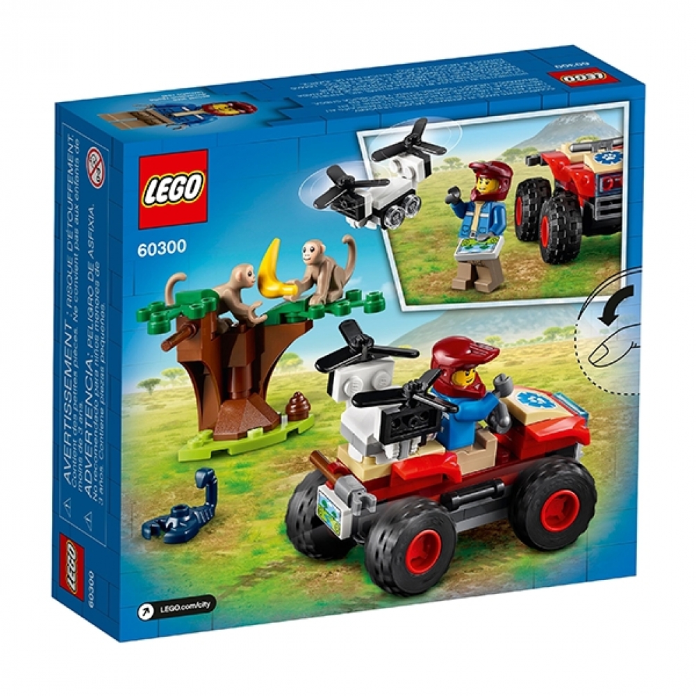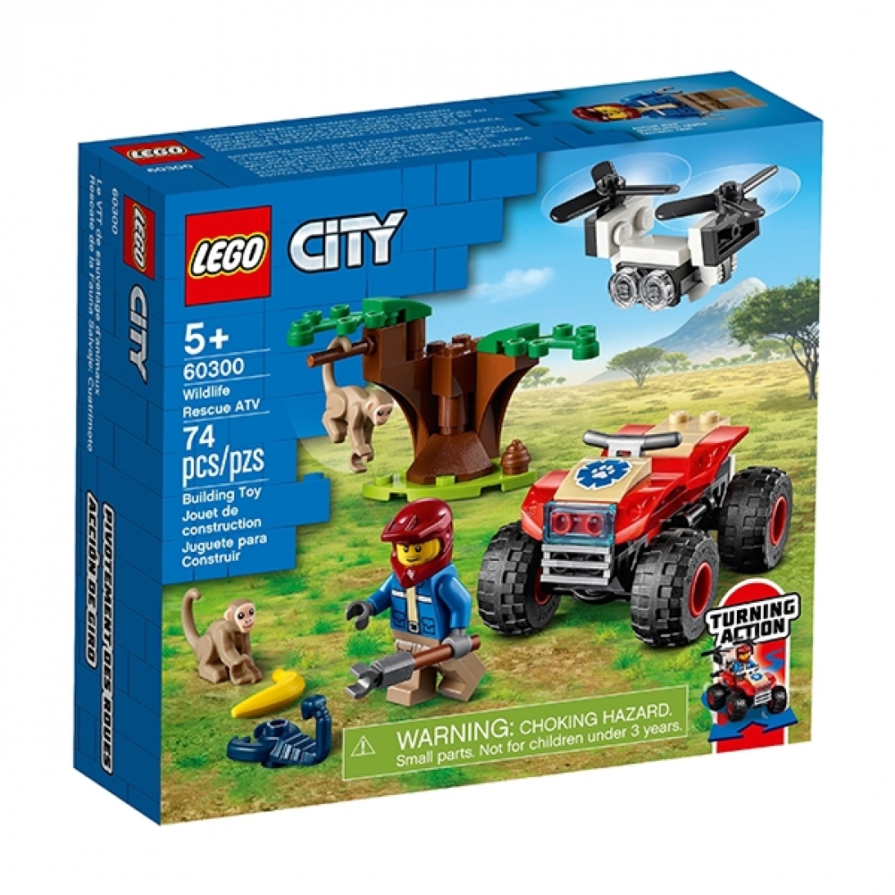 Introduci gli esploratori in erba alle meraviglie della natura con questo stimolante playset ATV di soccorso animale LEGO® City (60300) caratterizzato da un fantastico fuoristrada (ATV) sterzante, dotato di braccio telescopico e drone e da una piccola ambientazione della savana. Aggiungi l’esploratore, le scimmie e lo scorpione nero e parti per entusiasmanti avventure di soccorso animale.