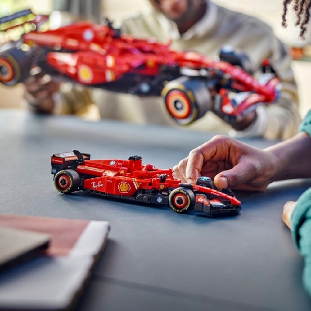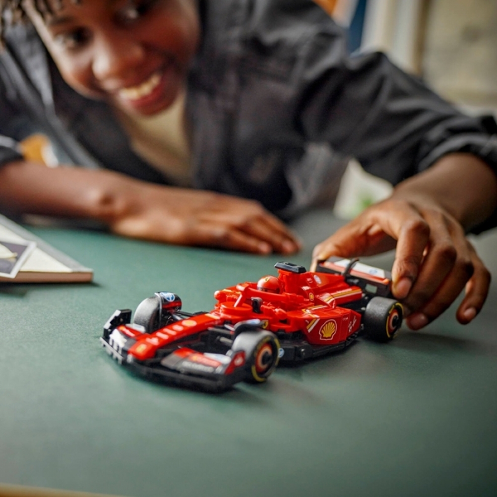 - Veicolo giocattolo Ferrari F1® per bambini: i bambini e le bambine dai 10 anni in su e i fan della Ferrari possono costruire, esporre e gareggiare con il set dell’Auto da corsa F1 Ferrari SF-24 LEGO® Speed Champions con pilota
