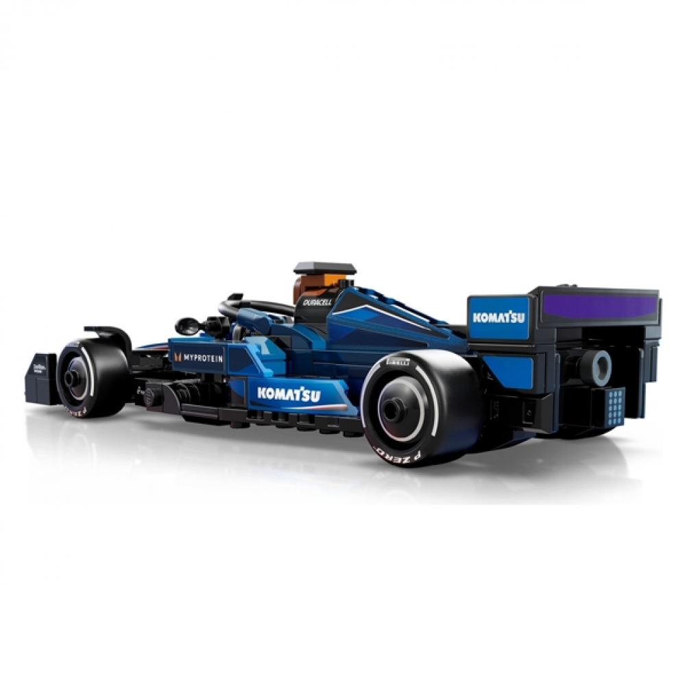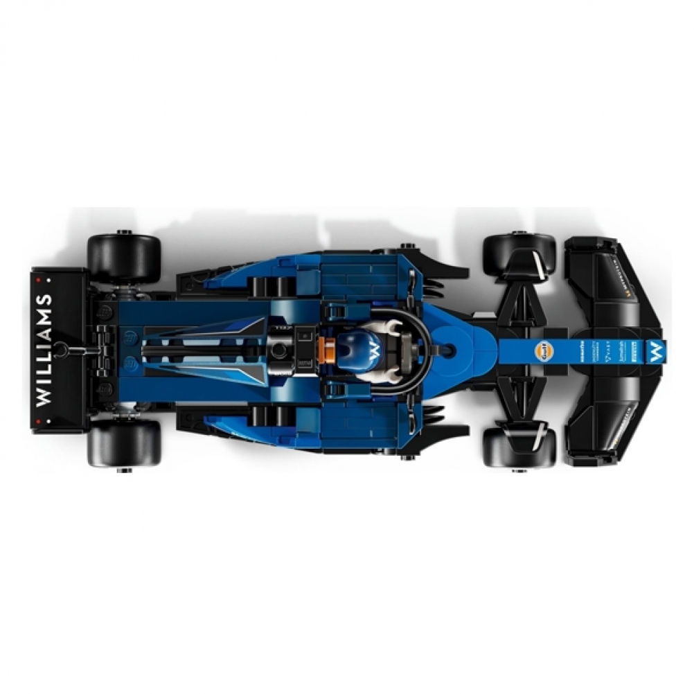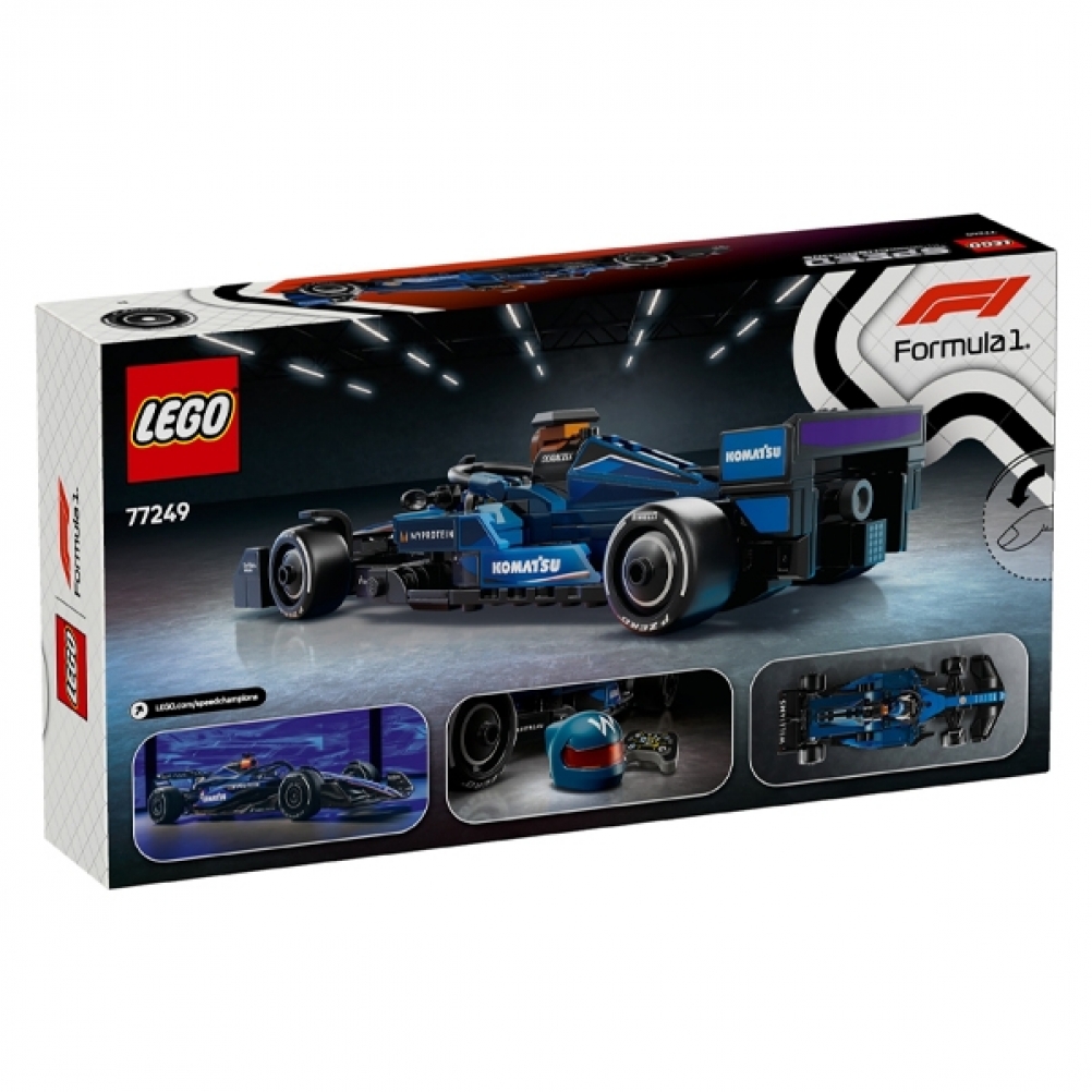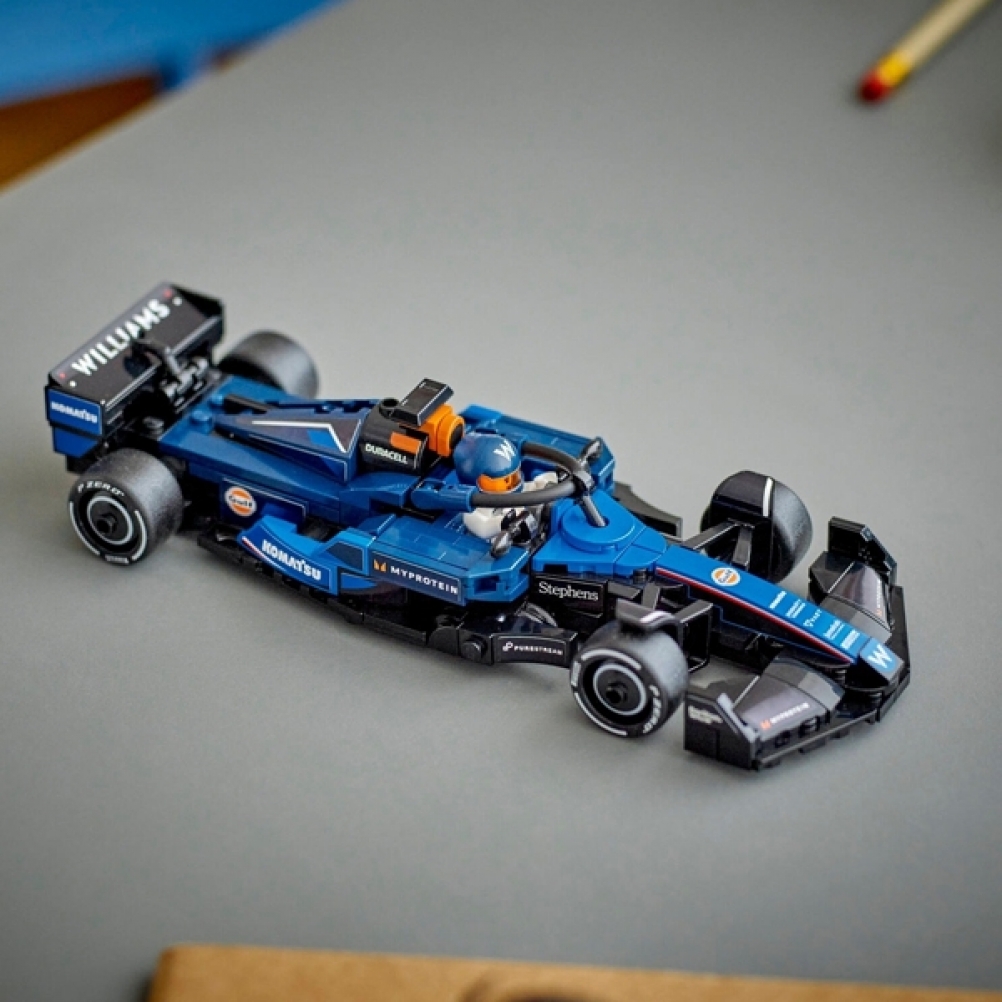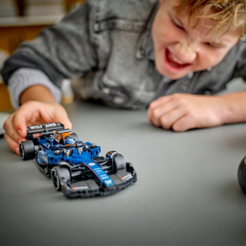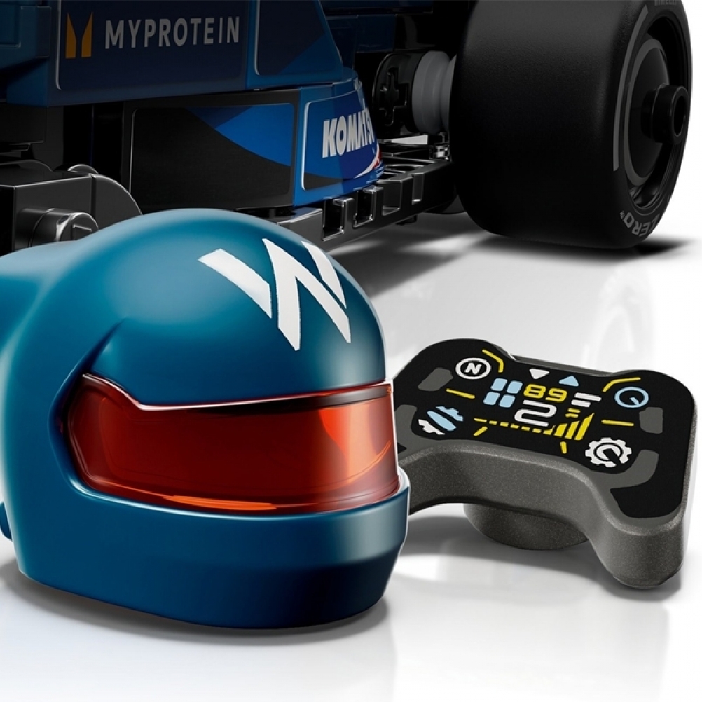 Il modello di auto di F1 è dotato di abitacolo che si apre sollevando la barra dell’halo, di ala posteriore, sospensioni a quadrilatero, adesivi degli sponsor e pneumatici posteriori più larghi con stampa “Pirelli”. L’auto da corsa di F1 costruibile contiene anche la minifigure del pilota con tuta Williams Racing e casco con ala, posizionabile nell’abitacolo per tante avvincenti gare.