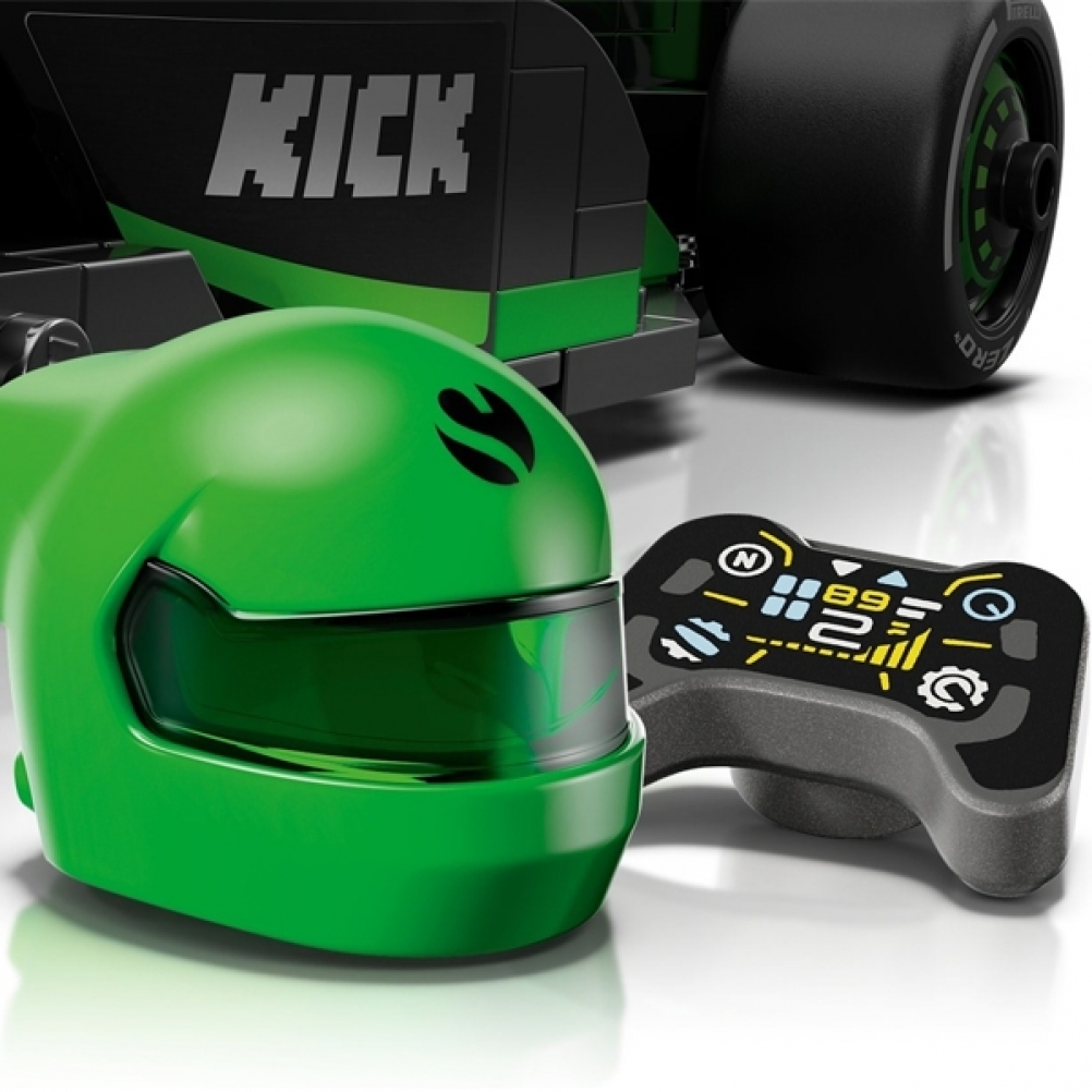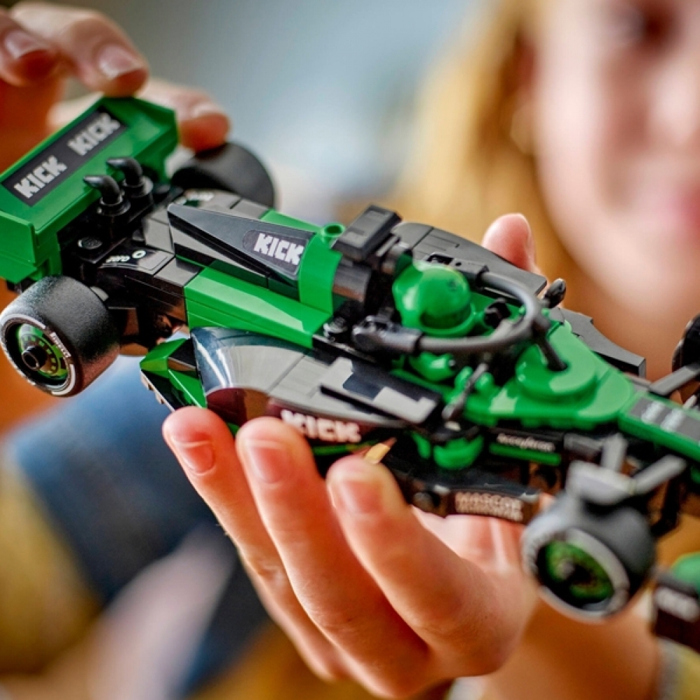 - 1 minifigure: il set del veicolo include una minifigure di pilota con tuta del Team KICK Sauber F1® e casco con ala che i bambini possono posizionare nell’abitacolo per ricreare emozionanti azioni di gara