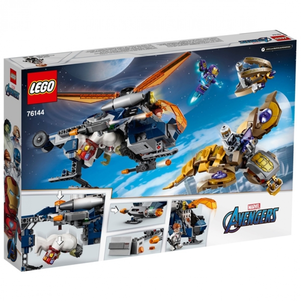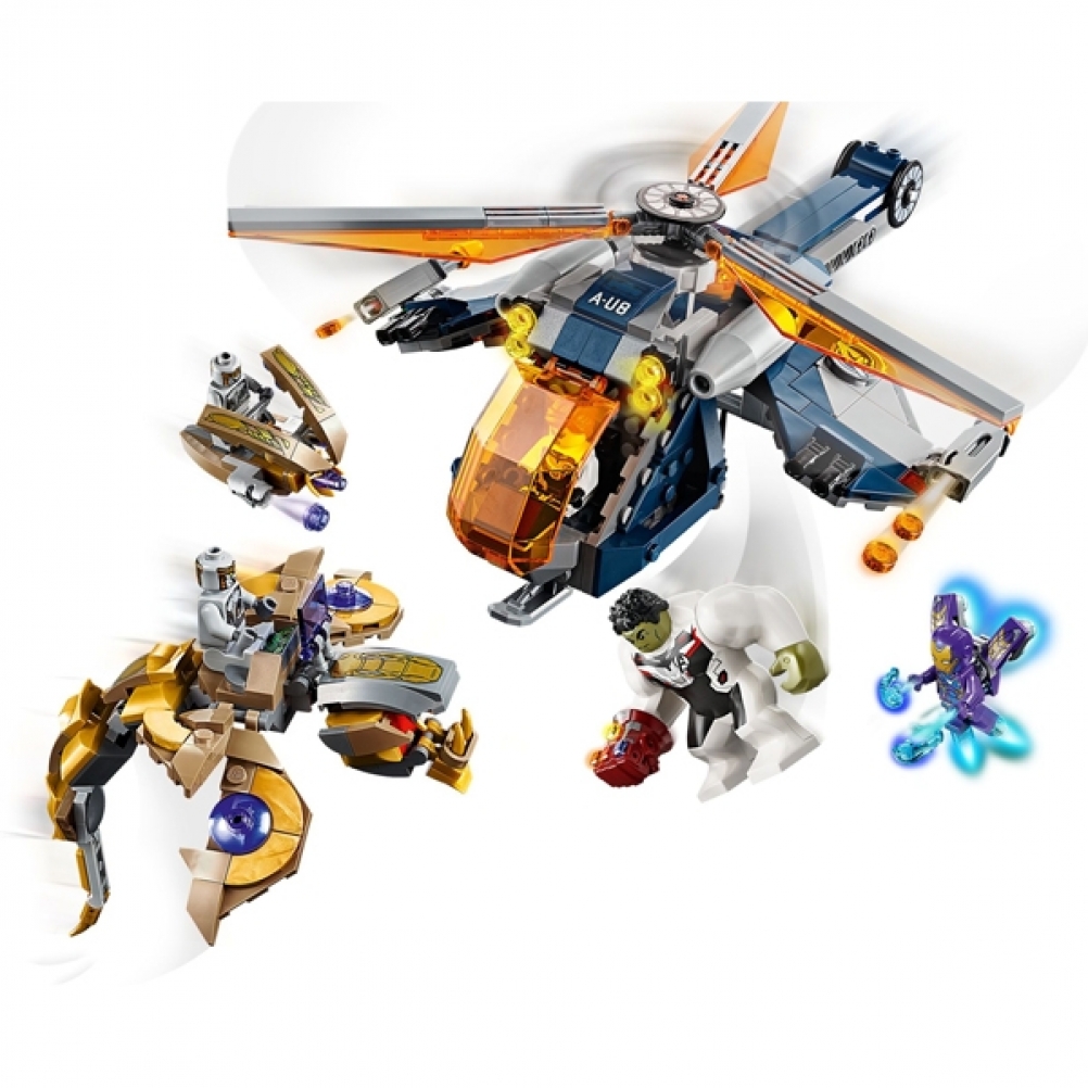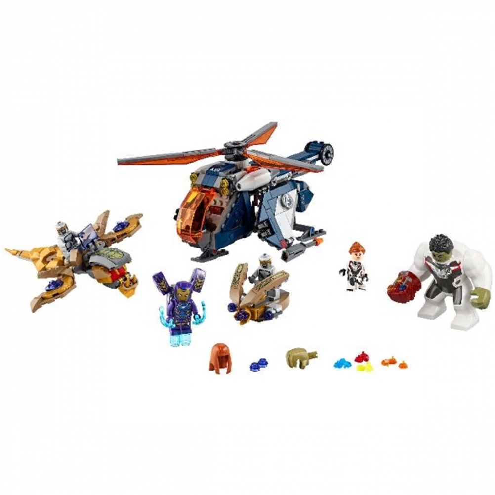 Contiene 4 minifigure, una fantastica action figure di Hulk, un elicottero con shooter a tre colpi e funzione di lancio in battaglia di Hulk, più il Leviatano dei Chitauri e un piccolo velivolo spara-missili per mettere in scena epici scontri aerei.