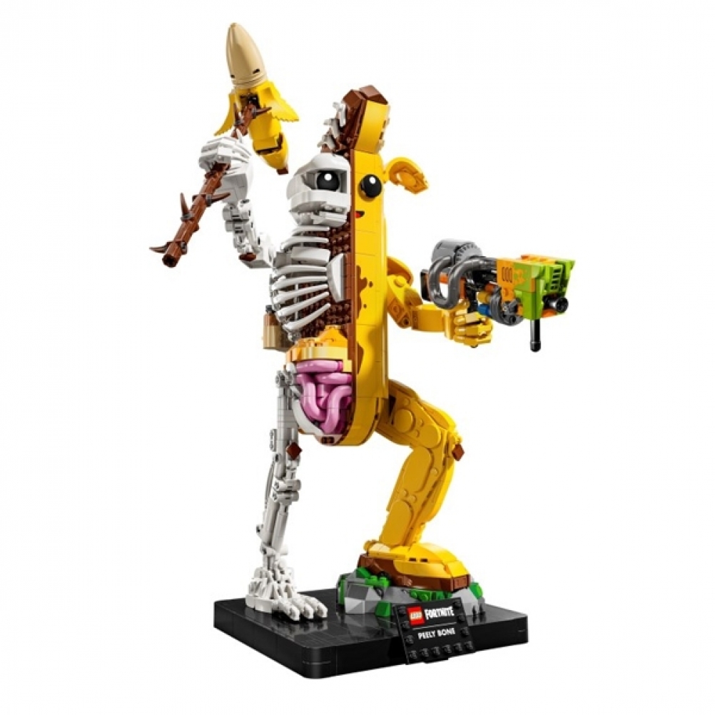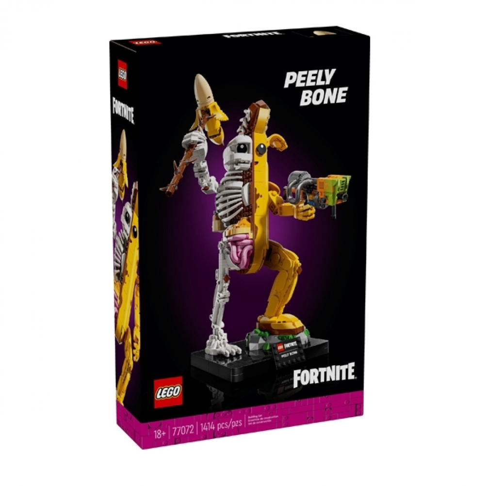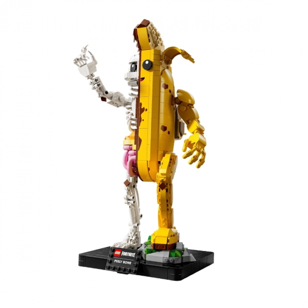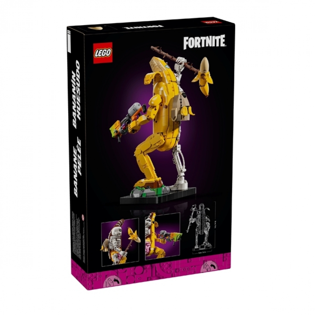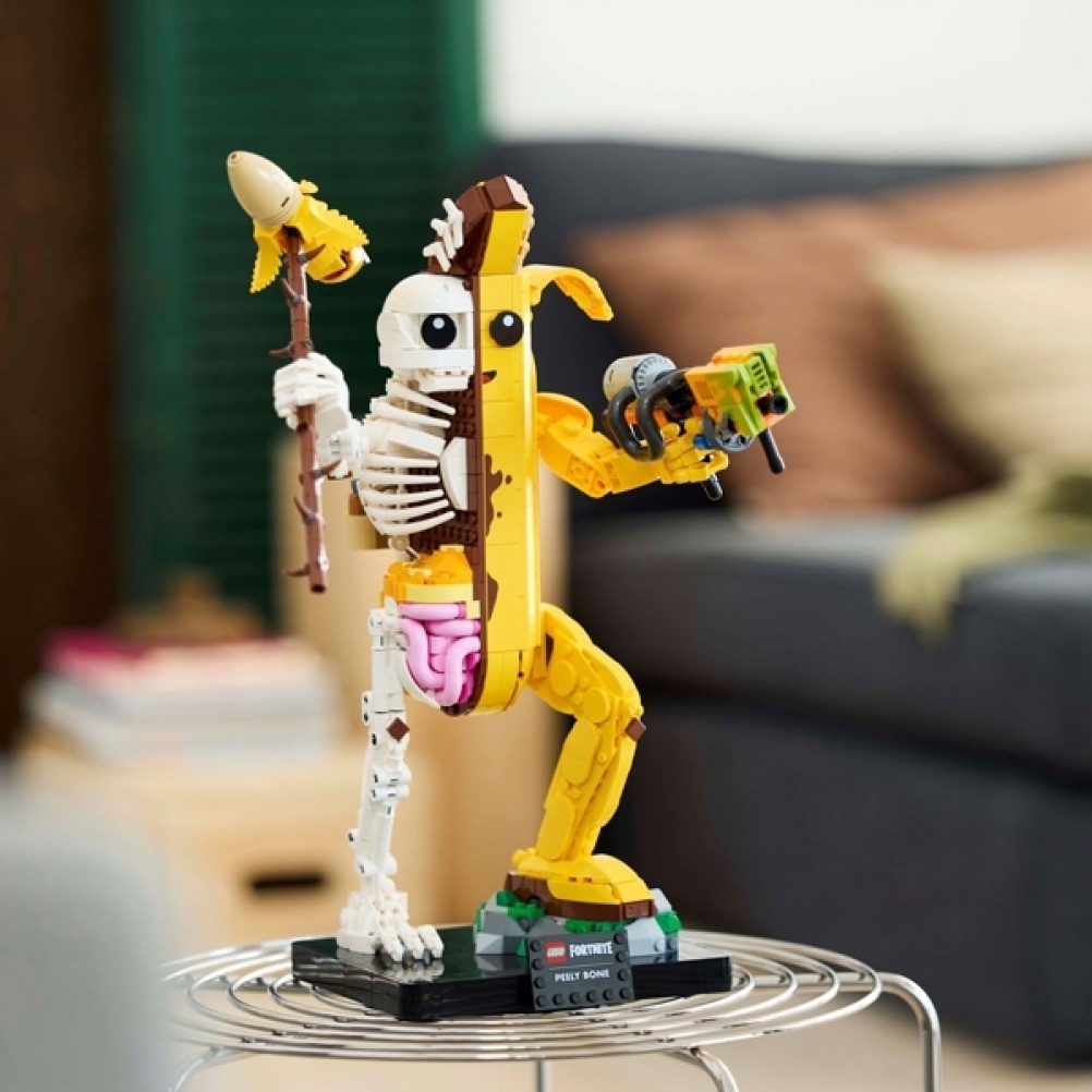 I fan di Fortnite possono immergersi in un’avventura fuori dallo schermo mentre assemblano la versione in mattoncini di Bananita sbucciata, che è per metà banana e per metà scheletro. Si divertiranno a scoprire le braccia e i polsi mobili del giocattolo, nonché i suoi fantastici accessori, che includono un piccone, un lancia-vernice e il Back Bling dello zaino delle banane.