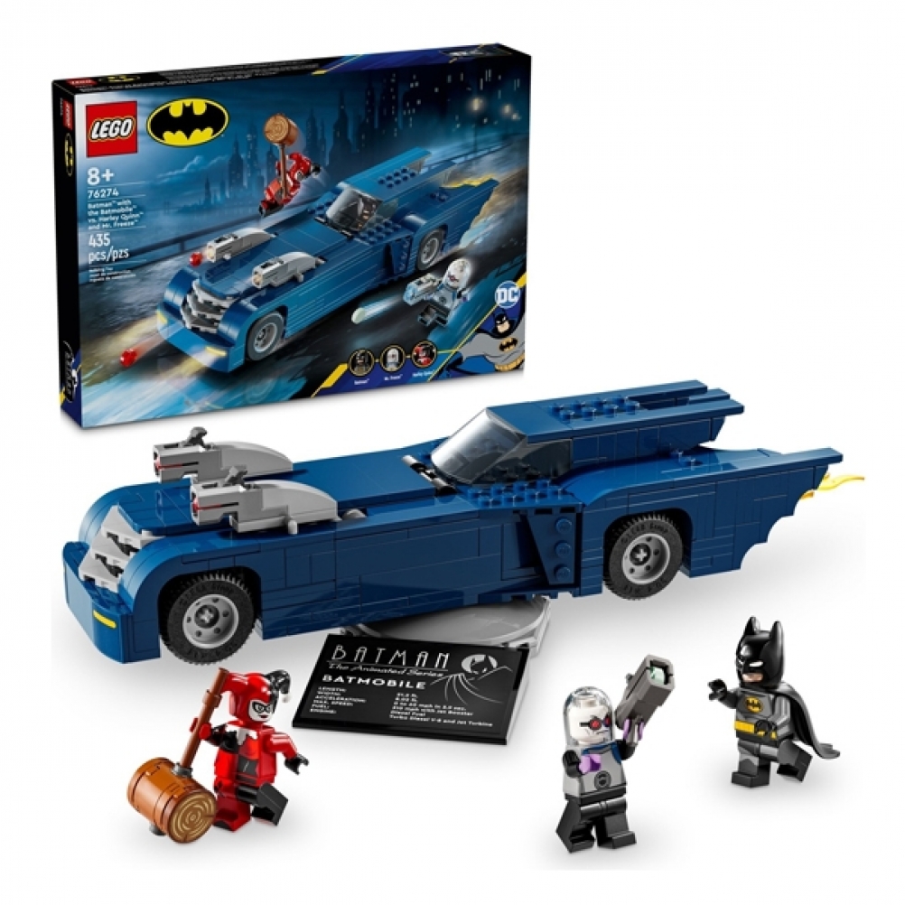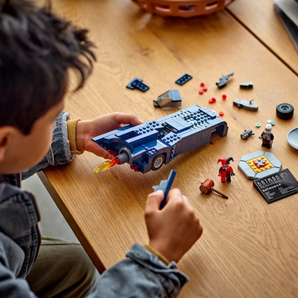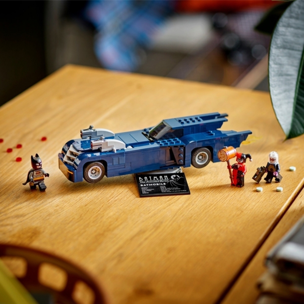 • Personaggi Batman™: The Animated Series™: questo giocattolodi Batman per bambini include una Batmobile™ costruibile con le minifigure di Batman, Harley Quinn™ e Mr. Freeze™
