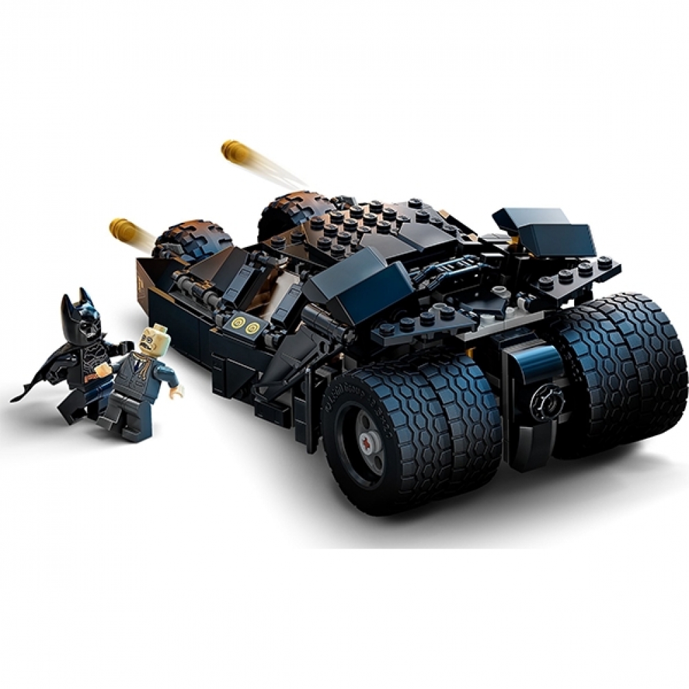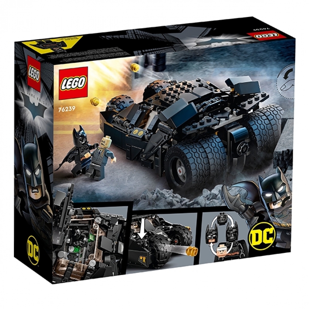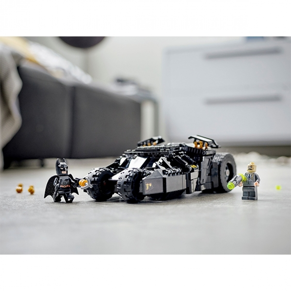 La Batmobile™ Tumbler della trilogia del Cavaliere Oscuro™ dei film di Batman, è uno dei veicoli da battaglia più rappresentativi della storia del cinema. Presenta un tetto apribile, con accesso ai posti di autista e passeggero e al quadro di comando. Ci sono 2 shooter sulla parte anteriore del veicolo e spazio sufficiente per il Batarang™. Sono incluse 2 minifigure: Batman, dotato di Batarang, pistola arpionante e una testa “da incubo” alternativa; e Scarecrow, con shooter e contenitore del gas della paura. Terminata la battaglia della giornata, la Batmobile Tumbler sarà magnifica esposta nella cameretta dei bambini.