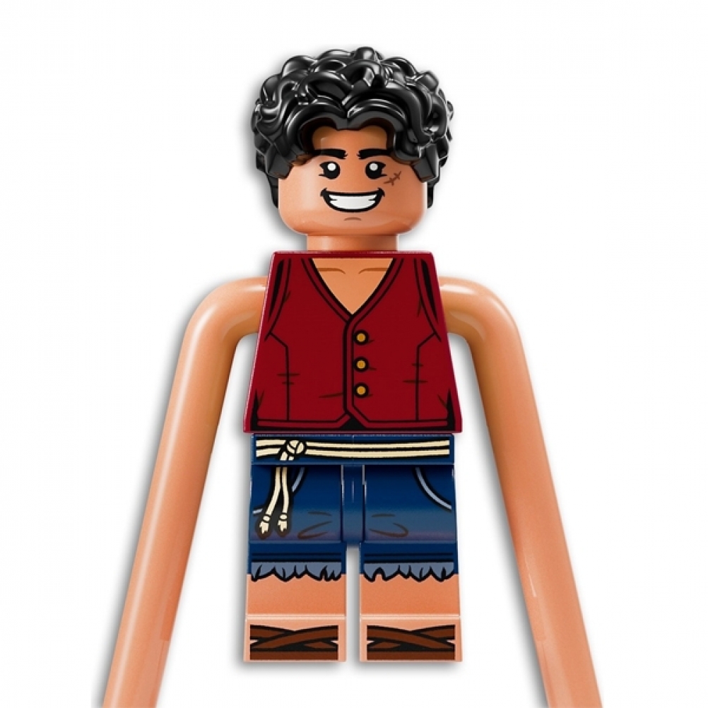 - Minifigure anime LEGO®: il set comprende le minifigure di Luffy, dotato di elementi per allungare le sie braccia, Nami, Usopp, Arlong e Chu