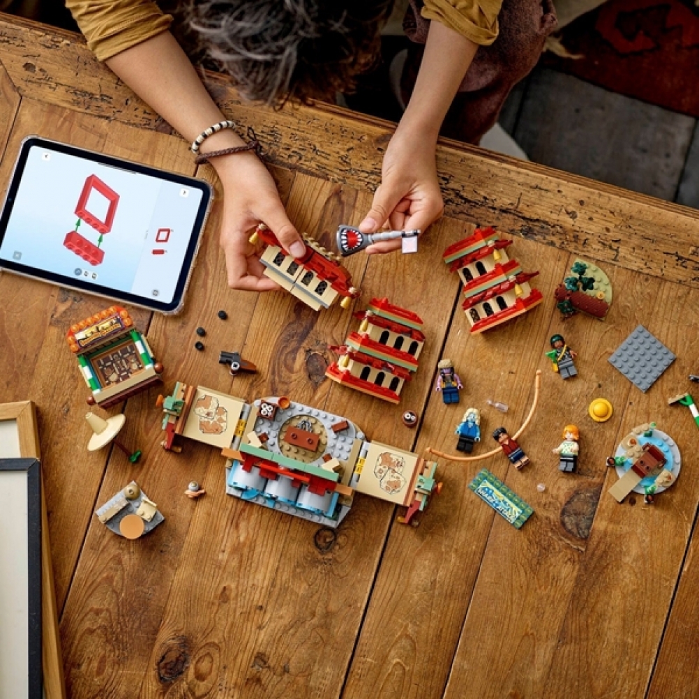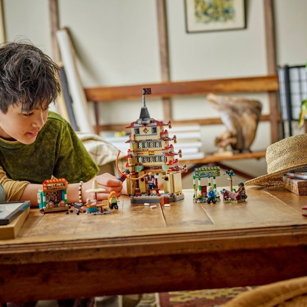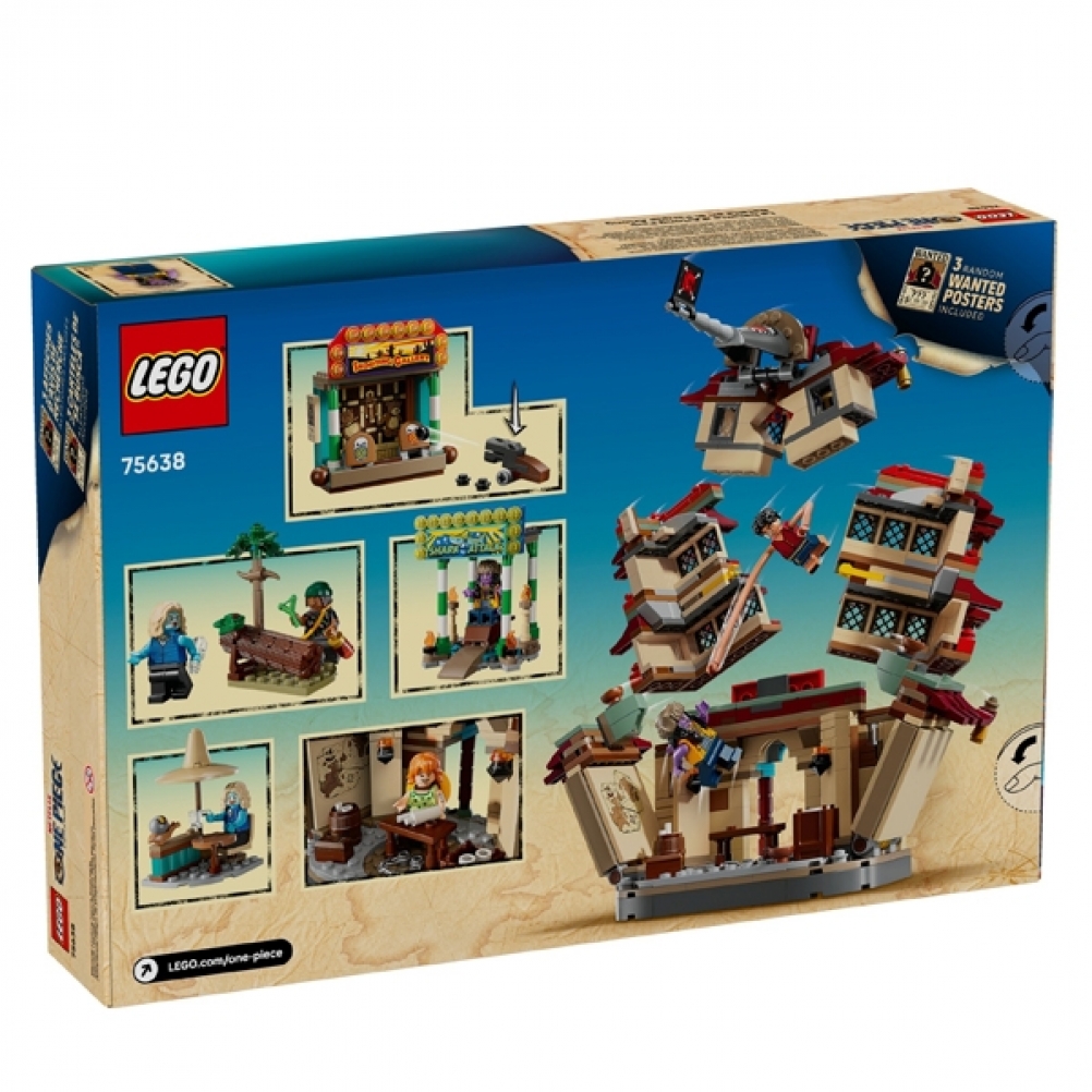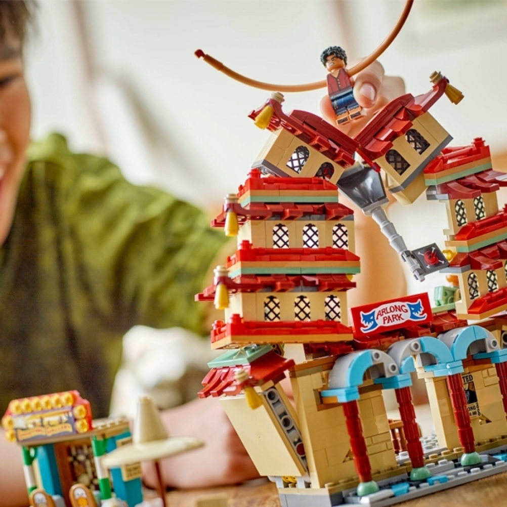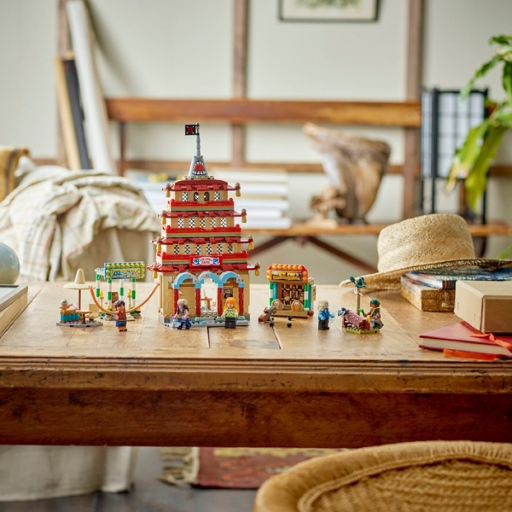 Il set da costruzione contiene le minifigure di Luffy – con pezzi per allungare le sue braccia – Nami, Usopp, Arlong e Chu. I bambini possono far crollare il modello della pagoda durante la battaglia toccandolo sulla parte superiore, mentre il tiro a segno offre ai bambini divertenti bersagli da colpire con gli shooter. Il cattivo Arlong può essere posizionato su un trono all’interno dell’edificio dell’attacco degli squali. Chu può bere qualcosa nella baracca e la foresta contiene un’iconica bottiglia di ketchup. Questo set da gioco contiene anche shooter e accessori, tra cui 3 poster “Ricercato”. Per tanto divertimento digitale in più, i costruttori possono ingrandire, ruotare i modelli in 3D e seguire i loro progressi utilizzando l’intuitiva app LEGO Builder. Il set contiene 926 pezzi.