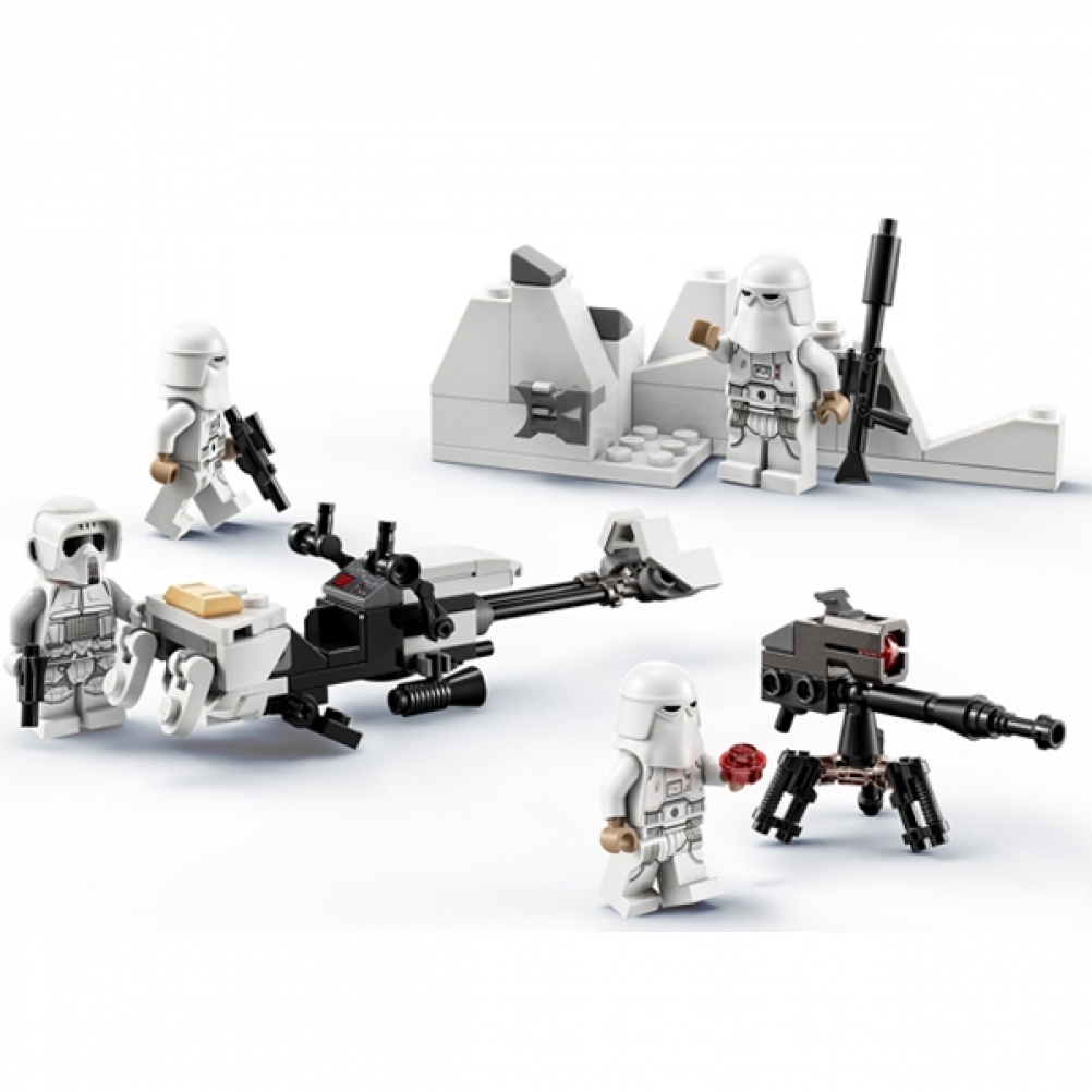 - Mini costruzioni: una speeder bike imperiale di Hoth (che può essere combinata con il set AT-AT 75313), un blaster pesante a ripetizione E-Web e una trincea di neve con munizioni extra