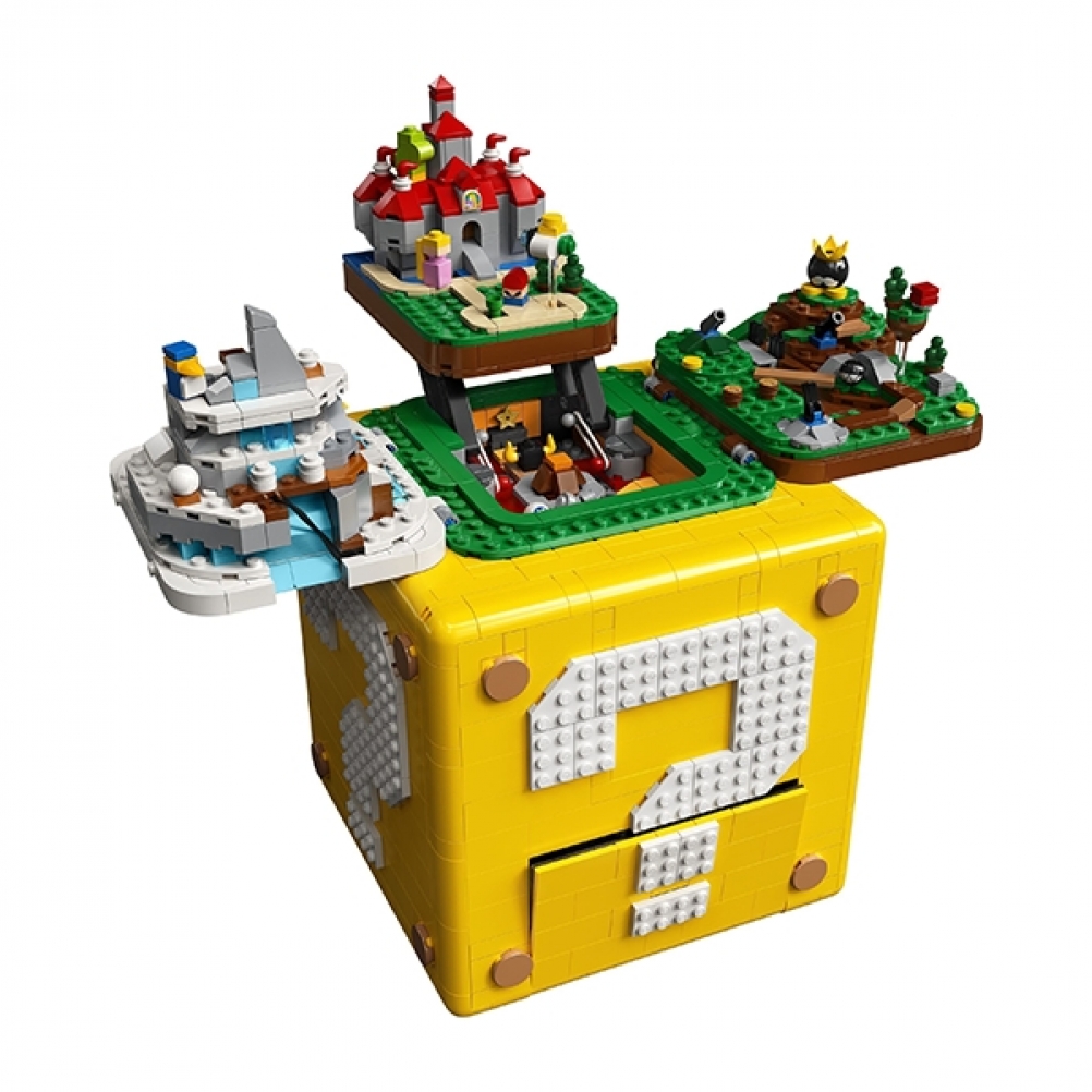 La costruzione, l’esposizione o il gioco con LEGO® Blocco ? Super Mario 64™ (71395) permetterà di rivivere fantastici ricordi. A 25 anni dal lancio del videogioco Super Mario 64, questo set propone un Blocco ? realizzato in mattoncini che si apre per consentire l’accesso agli inconfondibili livelli del gioco: il Castello di Peach, la Battaglia di Bob-omba, il Monte Refrigerio e la Landa di lava. Con le 10 microfigure dei personaggi più noti è possibile ricreare le scene in modo ancora più dettagliato.