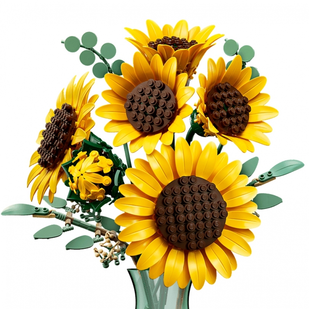 • GIRASOLI LEGO®: il bouquet include 6 girasoli in varie fasi: 1 bocciolo di girasole, 3 girasoli in fase di fioritura e 2 grandi girasoli completamente aperti