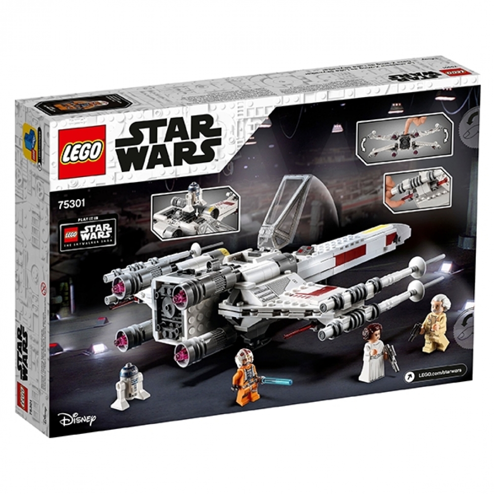 Con questa fantastica versione in mattoncini LEGO® dell’X-Wing Fighter di Luke Skywalker (75301) della trilogia classica di Star Wars™, i bambini possono diventare gli eroi delle loro epiche storie. Il set conquisterà i fan con i suoi dettagli autentici, tra cui la cabina di pilotaggio apribile per minifigure LEGO con uno spazio dietro per R2-D2, le ali regolabili in posizione di attacco con un solo pulsante, il carrello di atterraggio retrattile e 2 shooter a molla.