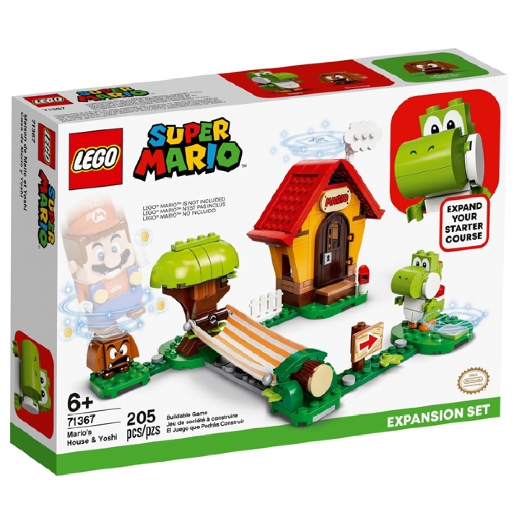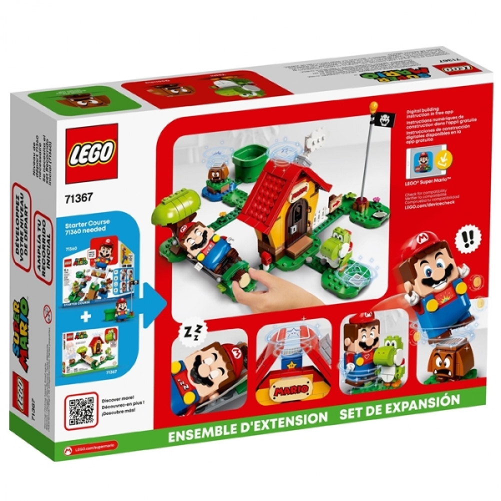 Questo set di gioco collezionabile include una casa da realizzare con i mattoncini dotata di tetto apribile sotto cui si trova il blocco del potere della stella, un'amaca e i personaggi di Yoshi e Goomba con cui LEGO® Mario™ (personaggio non incluso) può interagire.