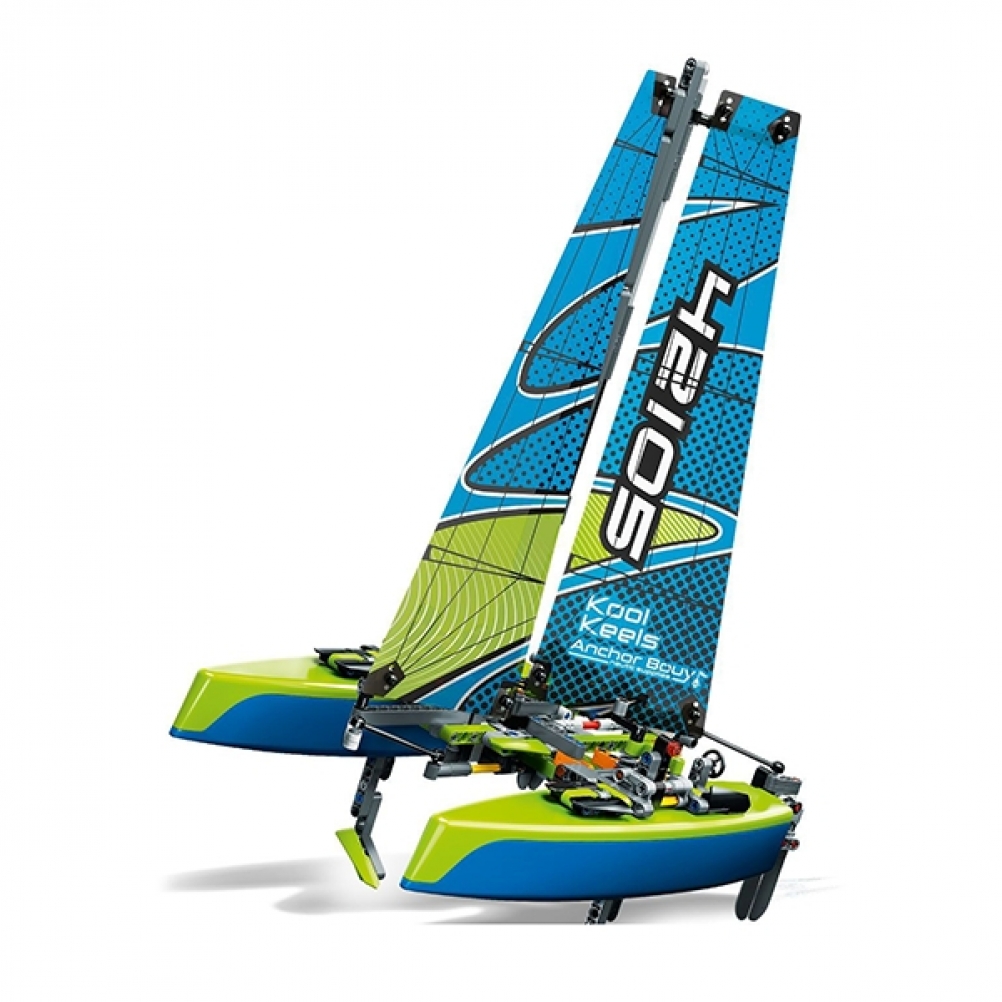 Lungo 32 cm, largo 22 cm e alto 44 cm (dalla punta del timone alla cima dell'albero), questo modello di barcaa vela è progettato per garantire la massima maneggevolezza in una vasca da bagno. Il set si compone di 404 pezzi