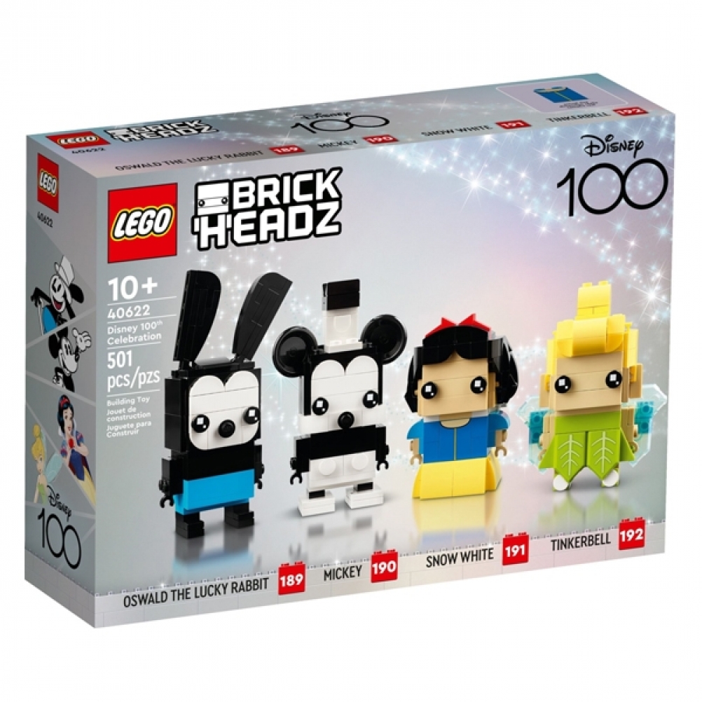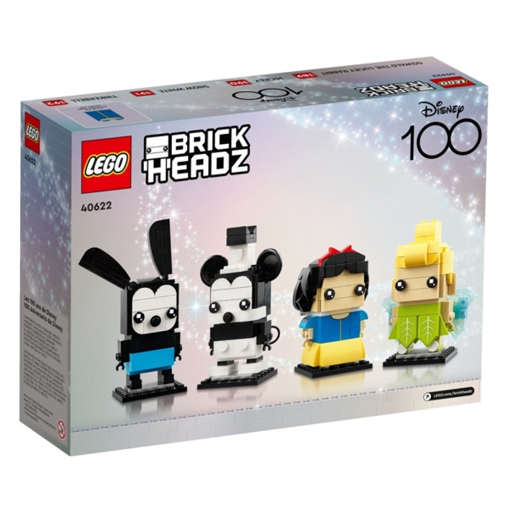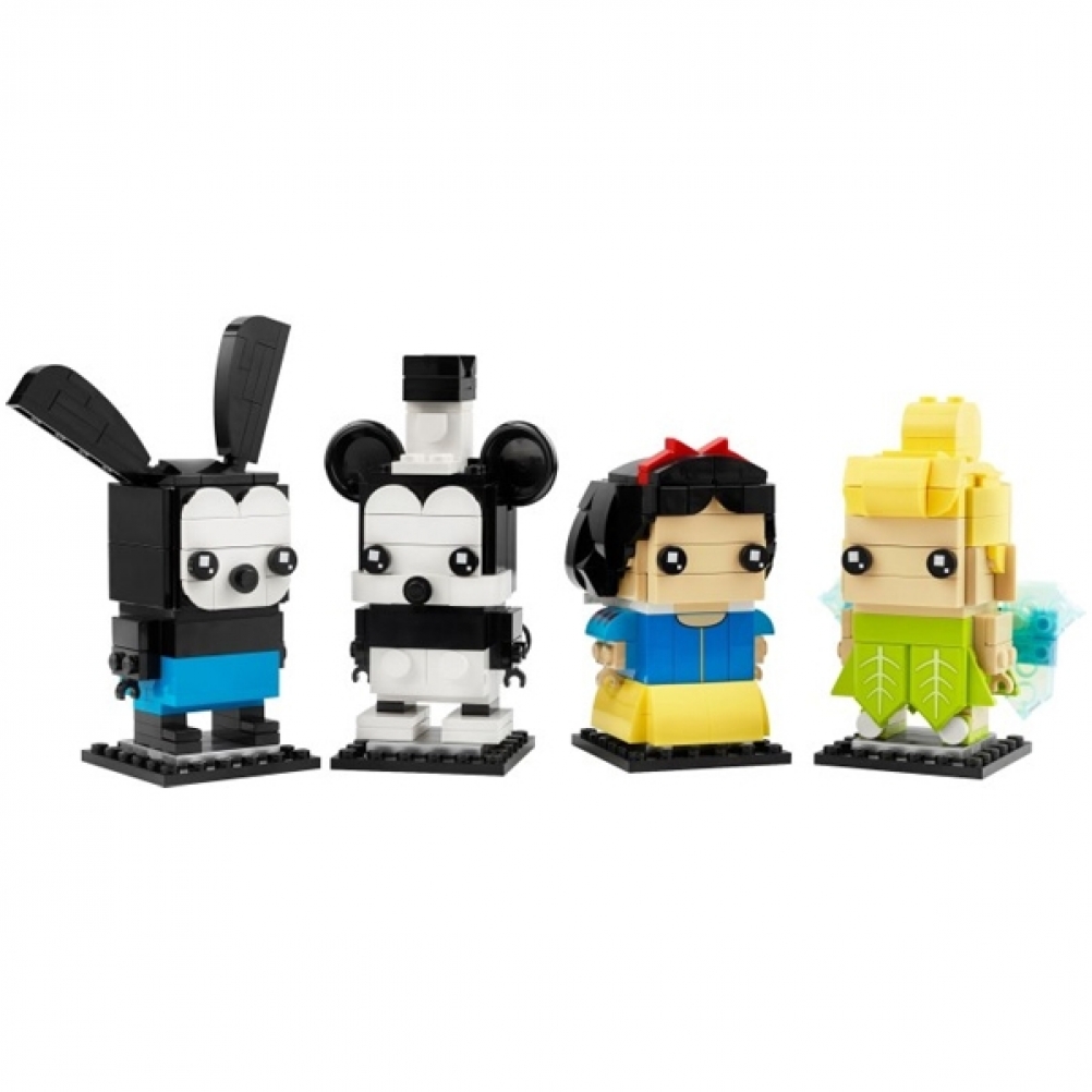 - Personaggi inconfondibili: i personaggi costruibili BrickHeadz LEGO di Oswald il coniglio fortunato, Topolino, Biancaneve e Trilli sono pronti per essere esposti con il set Celebrazione dei 100 anni di Disney (40622)