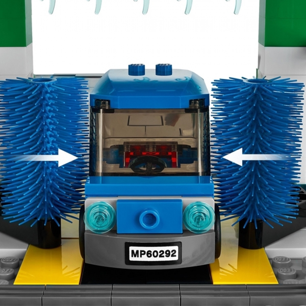 • Questo set LEGO® è ricco di dettagli realistici. I bambini possono condurre i veicoli all’interno dell’autolavaggio per far girare le spazzole, sollevare i contenitori della raccolta differenziata con la gru del camion e molto altro.