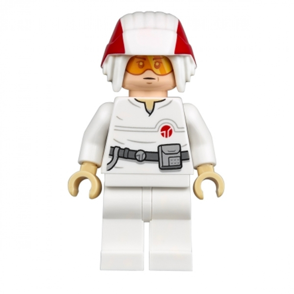 Pilota della Twin-Pod Cloud Car visto su Bespin, con uniforme arancione e dettagli precisi: una minifigure ideale per completare le scene di L’Impero Colpisce Ancora nella tua collezione LEGO Star Wars.