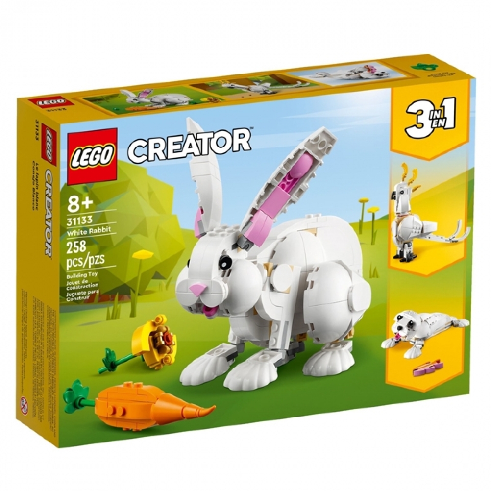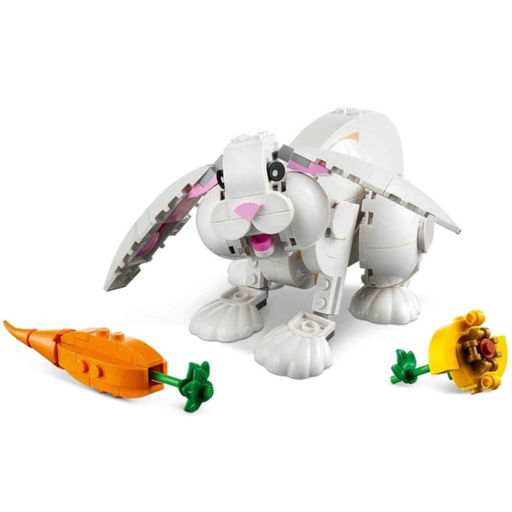 I bambini dagli 8 anni in su possono inventare storie divertenti con questo fantastico playset del Coniglio bianco LEGO® Creator 3 in 1 (31133). Contiene un coniglietto giocattolo in mattoncini con testa, gambe, bocca e orecchie posizionabili, e una scelta di 2 snack: una carota o un fiore.