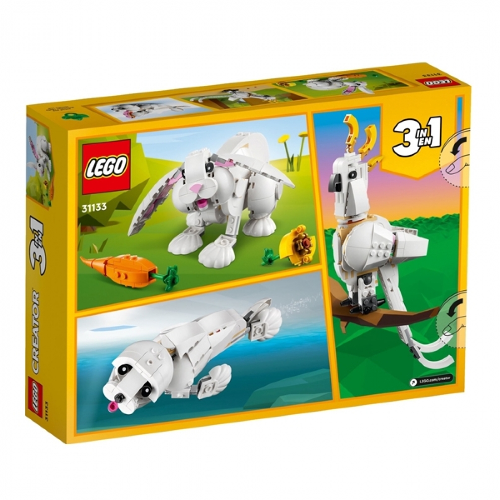 • Giocattolo 3 in 1: gli amanti degli animali si divertiranno un mondo con il playset del Coniglio bianco LEGO Creator 3 in 1 (31133), con 3 modelli giocattolo in 1: un coniglio bianco, un pappagallo cacatua e una foca bianca
