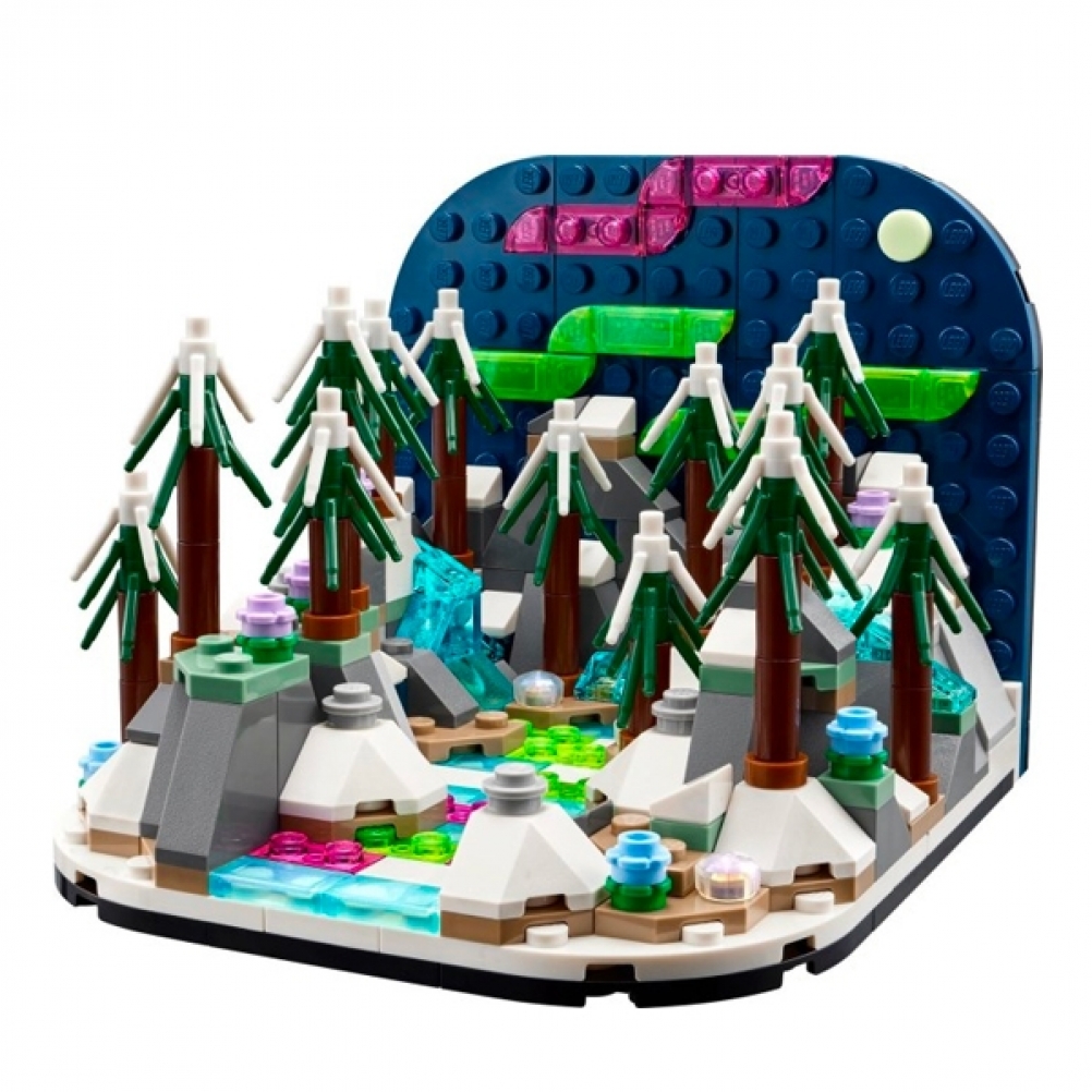 - Una celebrazione del colore: scopri un progetto coinvolgente assemblando i dettagli del paesaggio invernale, con i modellini degli alberi, i vibranti dettagli rosa e verdi del cielo e i riflessi ghiacciati