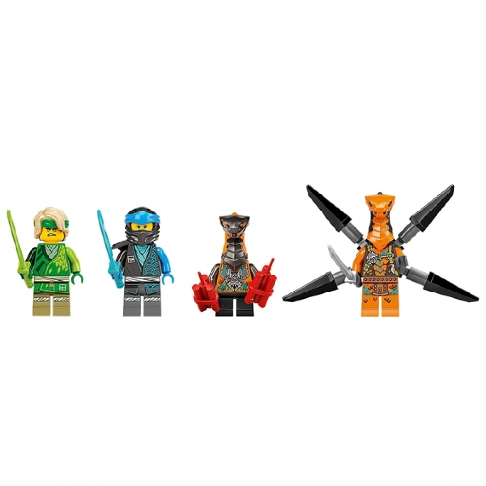 - 4 minifigure: include Lloyd con una spada, che può essere potenziato con un cappuccio; Nya con una spada; Vipera volante con jetpack e spada; e Pitone dinamite con dinamite e balestra