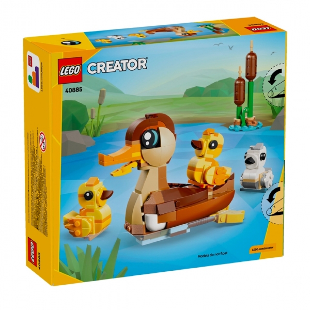 I bambini e le bambine dai 6 anni in su possono creare storie divertenti con questo adorabile set di anatre LEGO® (40885) costruibile. Questo giocattolo per bambini raffigura una mamma anatra, 3 anatroccoli e una pianta di tifa. La mamma anatra habecco e zampe snodabili, così può stare in piedi o in posizione natatoria. C’è anche spazio per posizionare un singolo anatroccolo sul dorso della madre. Una volta terminato il gioco, la famiglia di anatre diventa un grazioso elemento decorativo per la cameretta. Il set contiene 262 pezzi.