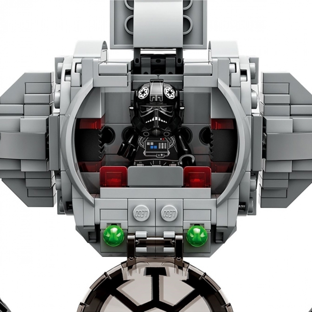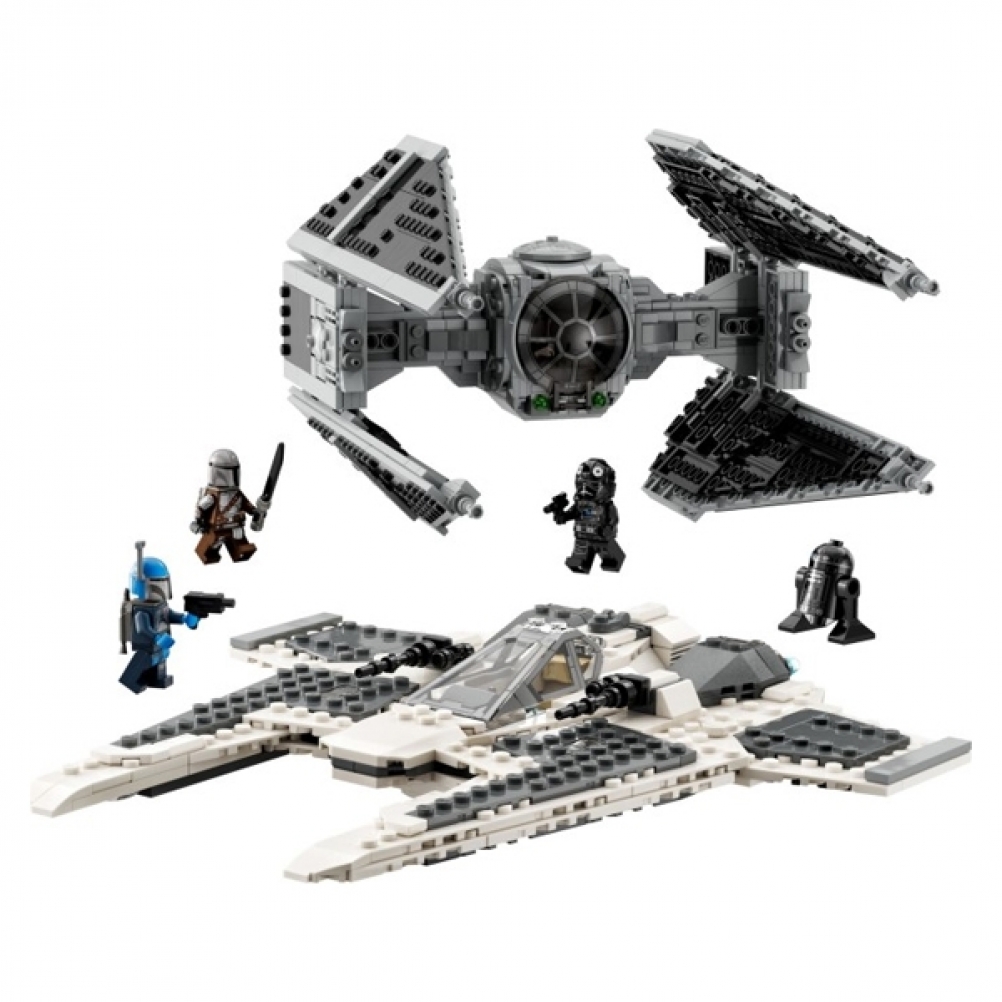 - 3 minifigure LEGO®: il Mandaloriano con una spada laser, il Comandante della flotta mandaloriana con pistola blaster e jetpack e un Pilota TIE con pistola blaster, oltre a un droide LEGO R2-E6