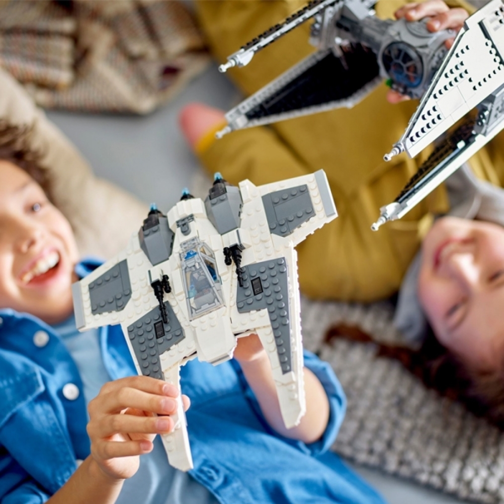 - Fang Fighter mandaloriano vs. TIE Interceptor (75348): ispira i bambini a raccontare le storie di Star Wars: The Mandalorian Stagione 3 e a creare le loro epiche avventure con i modelli di caccia stellari costruibili