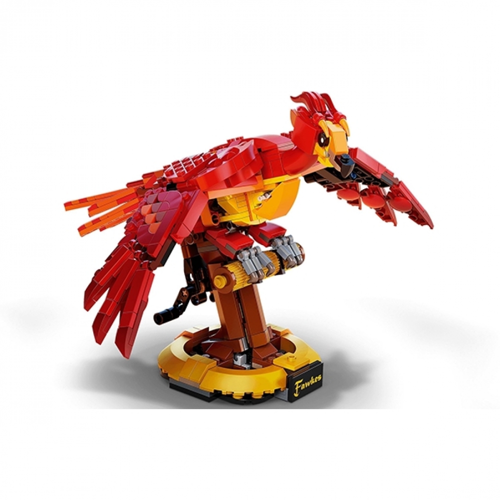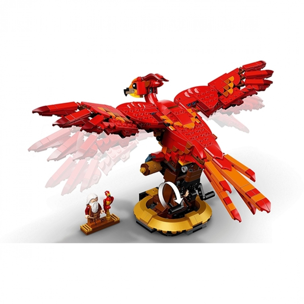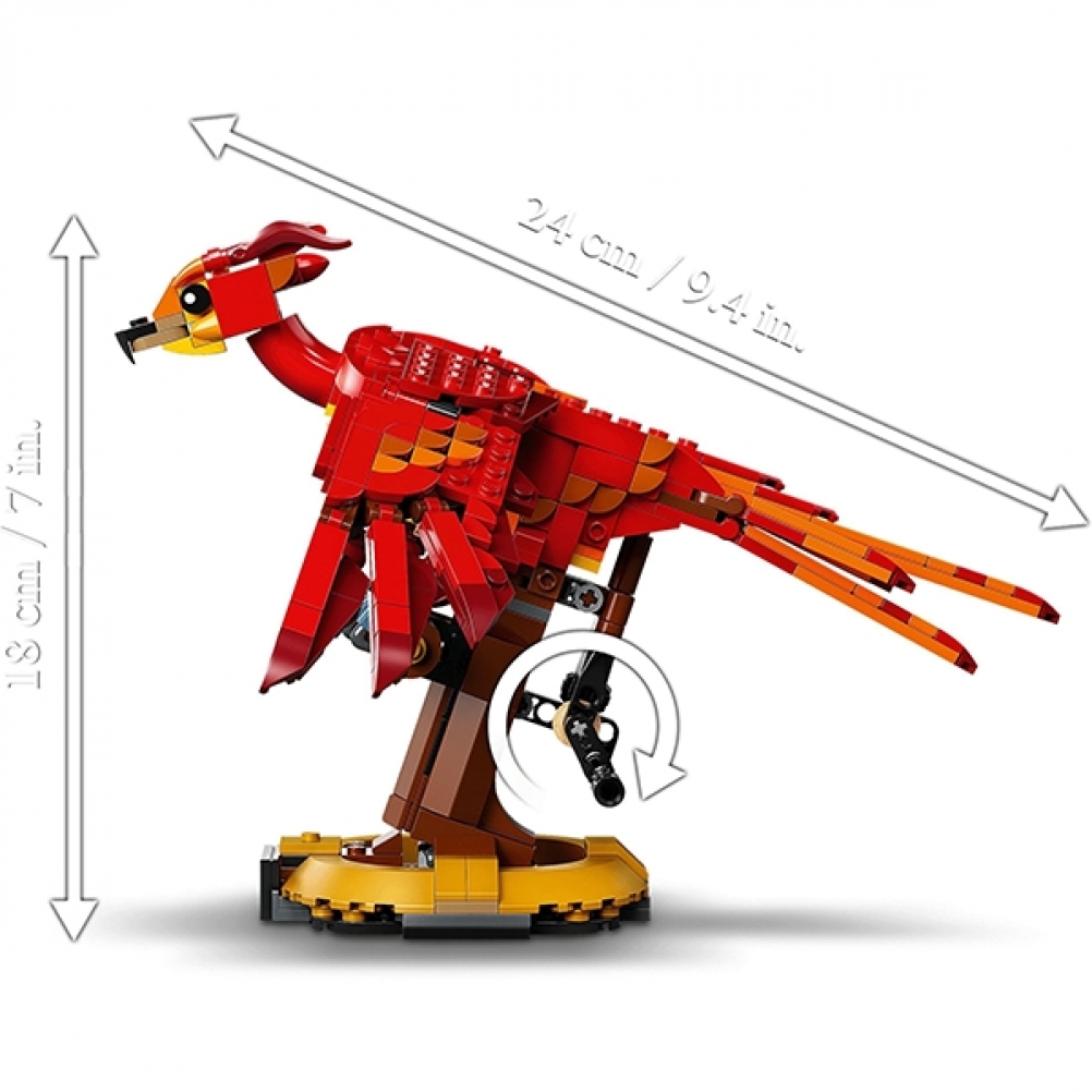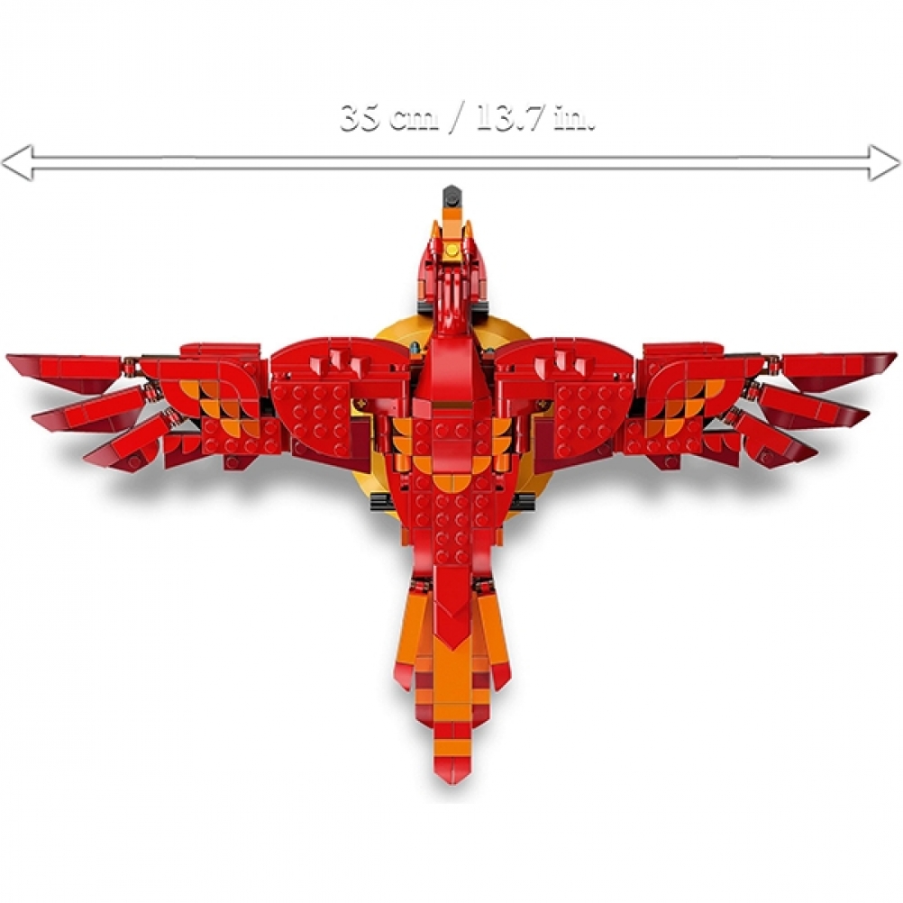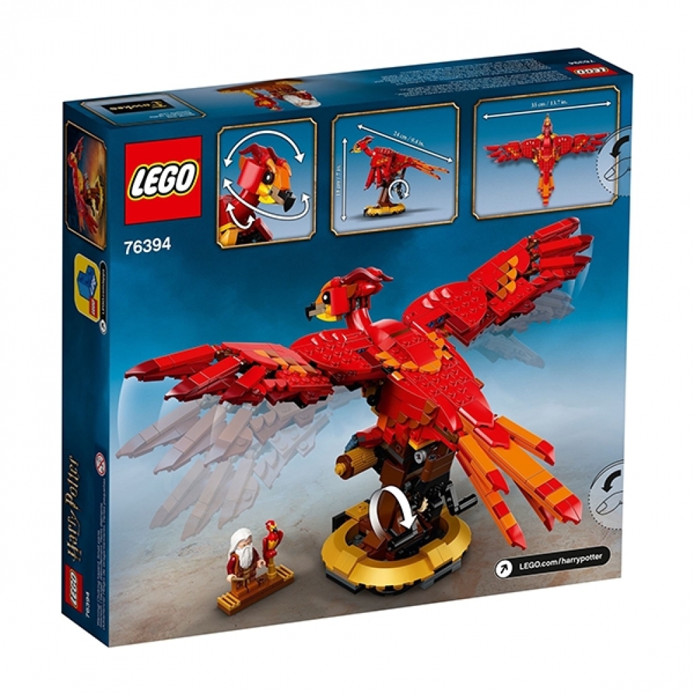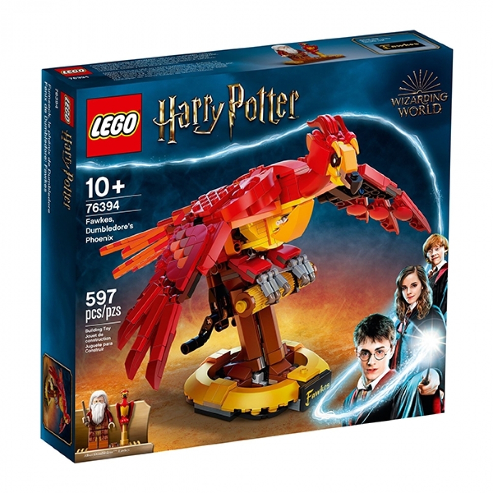 Questo modello in mattoncini da 597 pezzi, riproduce le piume infuocate, il becco potente e il volo aggraziato di Fanny la fenice. Oltre a essere un progetto di costruzione gratificante, è anche un modello da esposizione impressionante, caratterizzato da ali articolate che si muovono realisticamente. I bambini girano semplicemente la maniglia sul retro e le ali si alzano e si abbassano in modo aggraziato, mostrando l’intera apertura alare di Fanny di oltre 35 cm. Il modello collezionabile si erge su una solida base ed è accompagnato da una minifigure LEGO di Albus Silente™ con a fianco una Fanny più piccola.