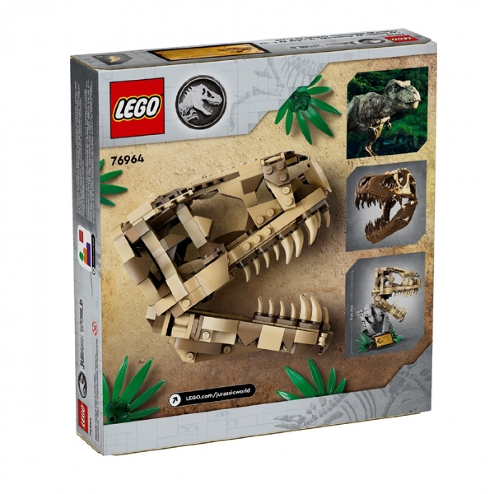 Ispira i bambini e le bambine amanti dei dinosauri o gli paleontologi in erba dai 9 anni in su con questo dinosauro giocattolo per i bambini Fossili di dinosauro: Teschio di T. rex LEGO® Jurassic World (76964). Il primo set di Jurassic World realizzato per l’esposizione presenta un teschio con una mascella apribile, un supporto con una targa informativa, un pezzo “ambrato” nascosto sul retro del modello e un’impronta “fossilizzata”.