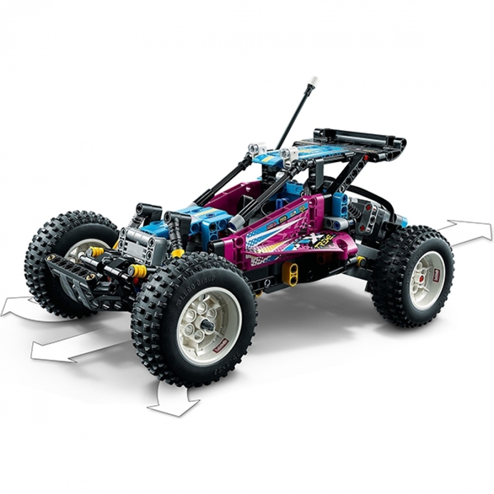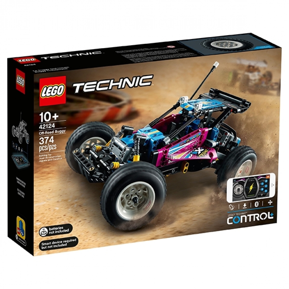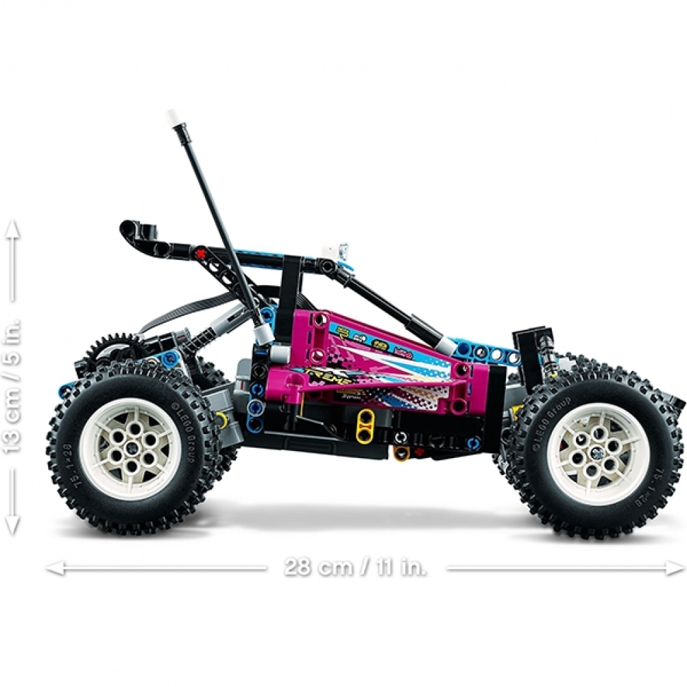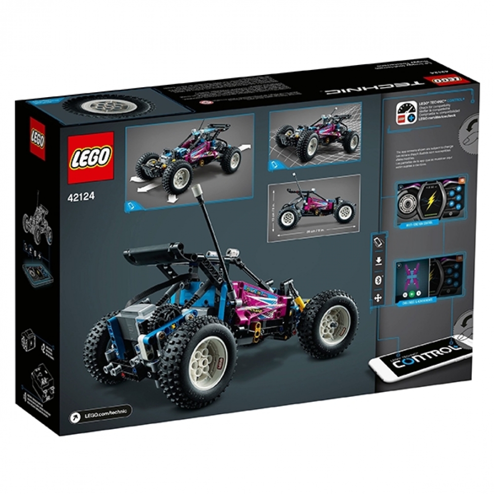 Torna agli anni '80 con questo Buggy fuoristrada LEGO® Technic™ (42124): è divertente per tutte le età, dai 10 anni in su. Dopo aver creato il modello, dagli vita utilizzando l'app gratuita CONTROL+. Il passeggino è angolato nella parte anteriore per dare stabilità durante i salti e l'esecuzione di acrobazie, proprio come le classiche macchinine RC. Con sospensioni anteriori e posteriori (una novità per LEGO Technic), pneumatici enormi, cofano apribile, antenna e adesivi retrò, quest'auto è piena di carattere.