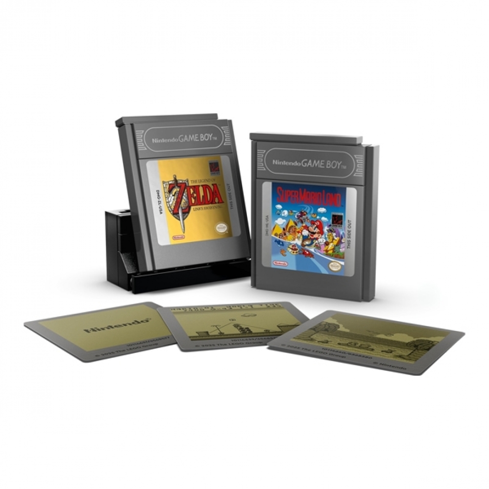 Personalizza il tuo display con i Game Pak del Game Boy The Legend of Zelda™: Link’s Awakening o Super Mario Land™, intercambiabili e costruibili, e i relativi schermi lenticolari (o una schermata iniziale Nintendo). Posiziona la tua creazione sul supporto espositivo costruibile per completare un display nostalgico.