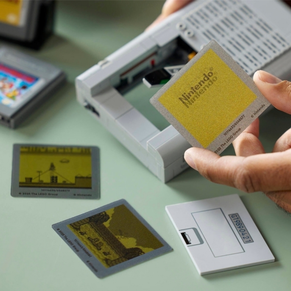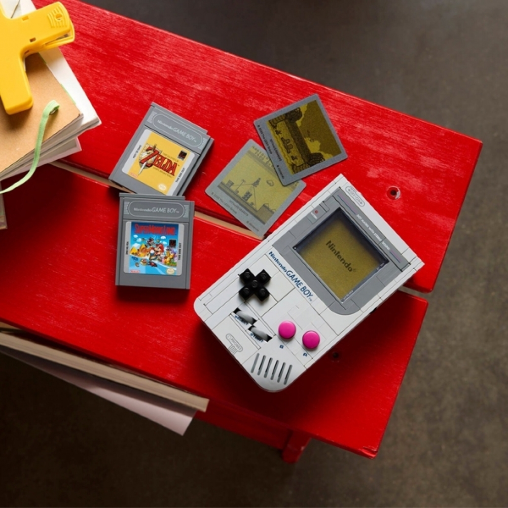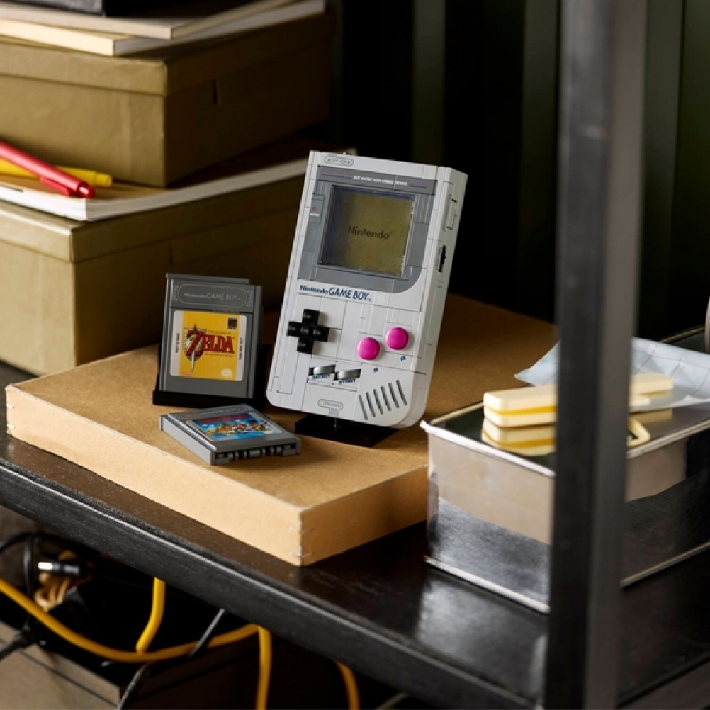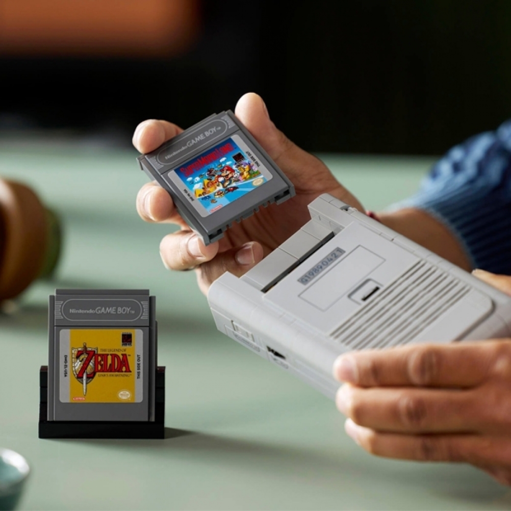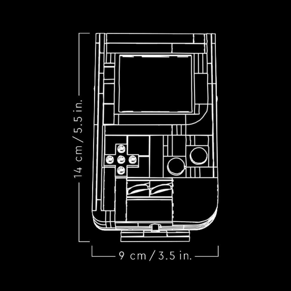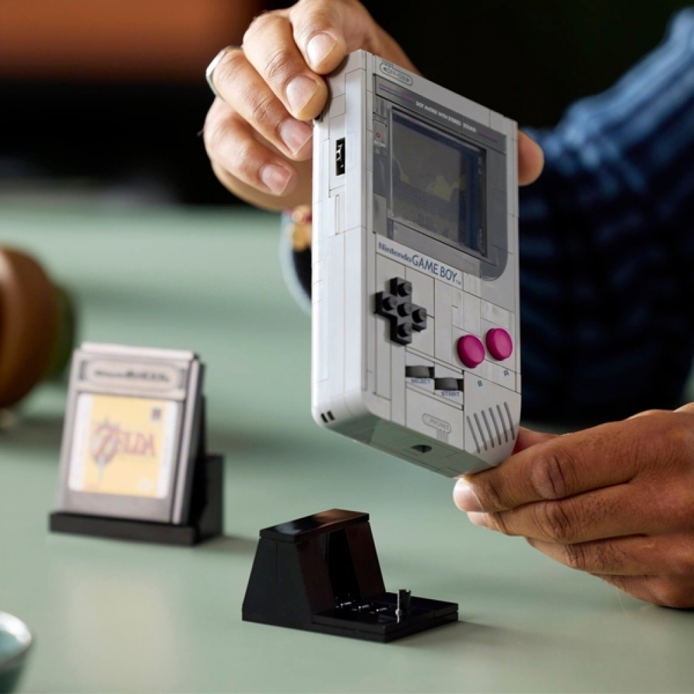 • Dettagli autentici: ricrea il +Control Pad, i pulsanti A e B, SELECT e START, la regolazione del contrasto e la manopola del volume e lo slot del Game Pak, ed esponi il tuo Game Boy™ in mattoncini sul supporto