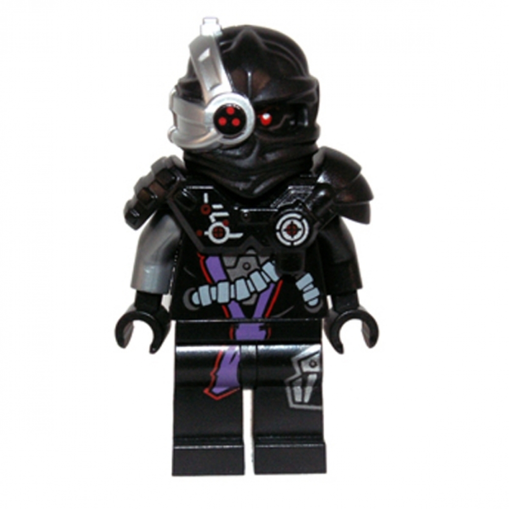 Minifigure di General Cryptor, nella versione Rebooted. Presenta corpo argentato e nero con dettagli meccanici stampati sul torso e sulle gambe, mani nere e testa argentata con dettagli elettronici che richiamano l’aspetto del droide comandante del franchise Ninjago.