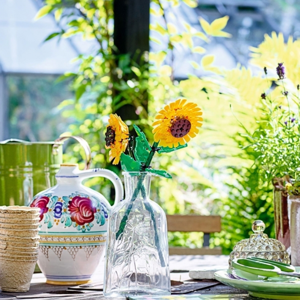 - Combinazione con altri set: Girasoli LEGO® può essere esposto da solo o in combinazione con i set Rose LEGO (40460), Tulipani LEGO (40461) o Bouquet di fiori LEGO (10280), ciascuno venduto separatamente