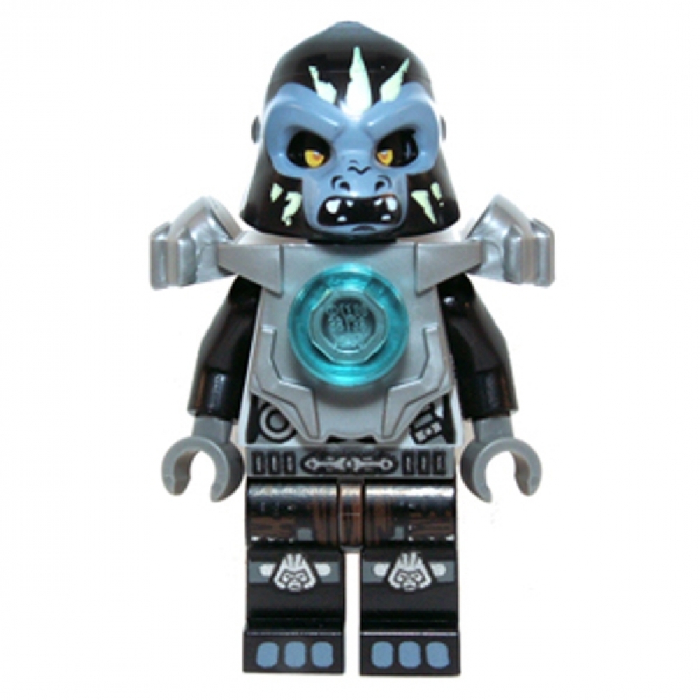 La Minifigure di Gorzan con Armatura Pesante Color Argento Piatta della serie Legends of Chima è un'interpretazione imponente e dettagliata di uno dei personaggi più robusti e coraggiosi della Terra di Chima. Gorzan, membro della tribù dei Gorilla, è rappresentato con un design che cattura la sua forza e la sua determinazione.