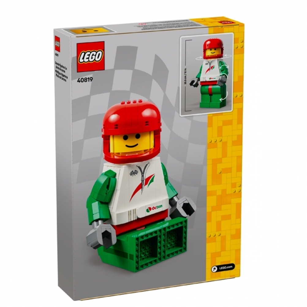 Entusiasma un appassionato di costruzioni LEGO® dai 10 anni in su con questa Grande minifigure di pilota da corsa (40819). Il kit di costruzione è ispirato alle minifigure presenti in oltre 20 set di giocattoli LEGO (ciascuno disponibile separatamente). Il pilota da corsa ha testa, mani, braccia e gambe mobili per esposizioni dinamiche o opzioni di gioco fantasiose e una sorpresa nascosta sotto il casco. Questa figura costruibile in grande scala è un fantastico pezzo da esposizione per qualsiasi casa o ufficio ed è un simpatico regalo giocattolo per i bambini, le bambine o gli appassionati delle corse.