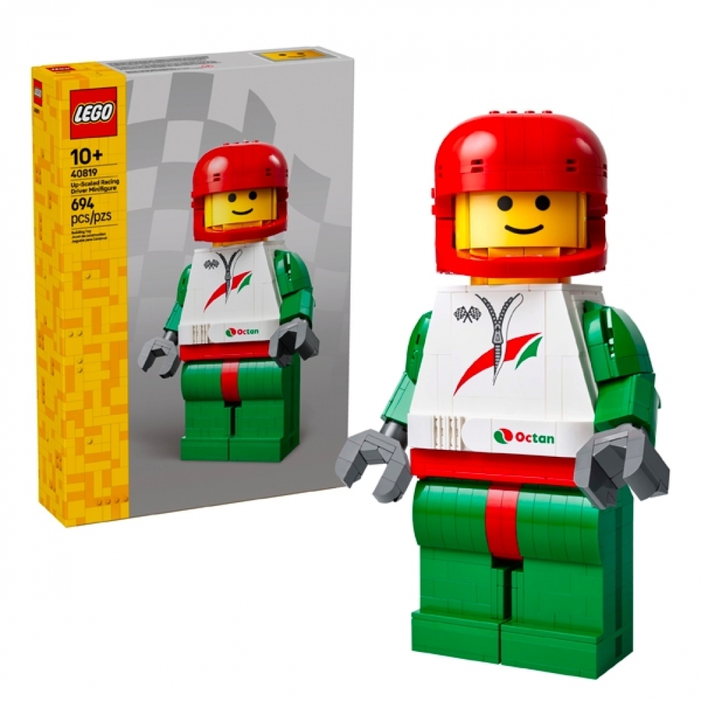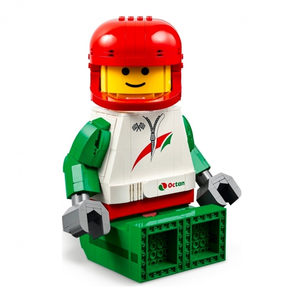 • Set costruibile a tema corsa: una grande minifigure costruibile realizzata principalmente per l’esposizione ma anche come giocattolo per il gioco di fantasia con altri set up-scaled, disponibili separatamente