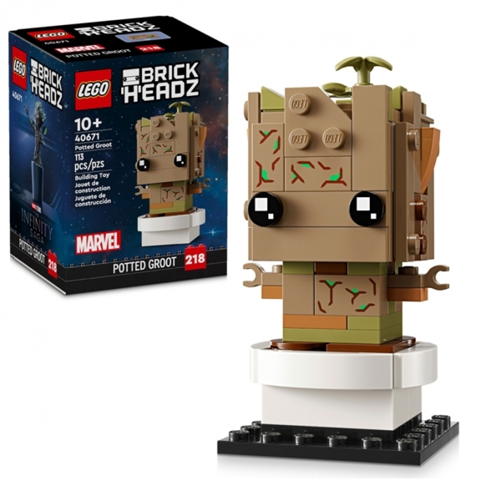 • Groot in vaso LEGO® BrickHeadz™: i bambini e le bambine dai 10 anni in su e i fan di Marvel possono costruire il simpatico Baby Groot in stile BrickHeadz dai colori vivaci