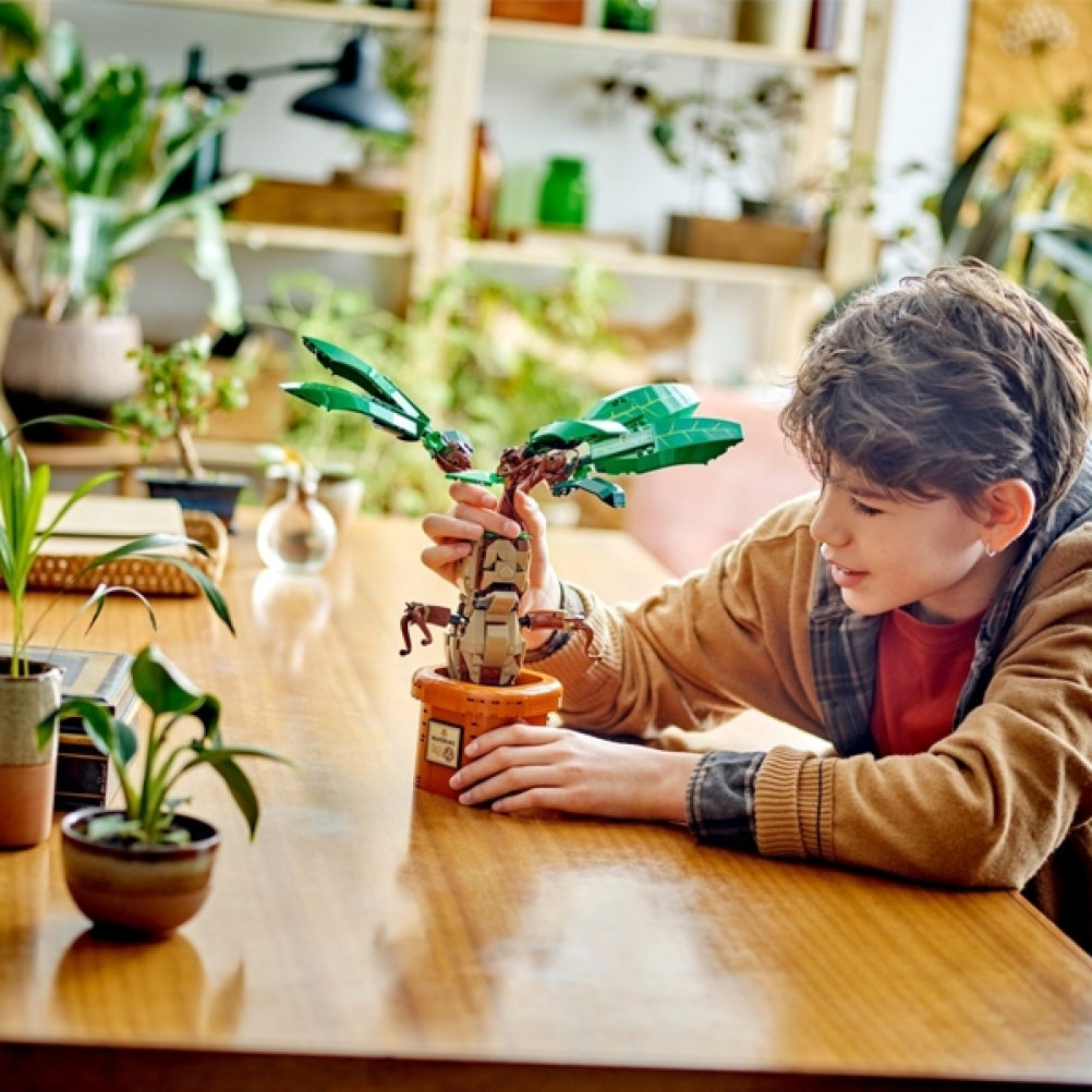 Pianta di mandragola LEGO® Harry Potter da esporre in modo giocoso: la prima figura in mattoncini LEGO di una magica pianta di mandragola della lezione di erbologia di Hogwarts.
