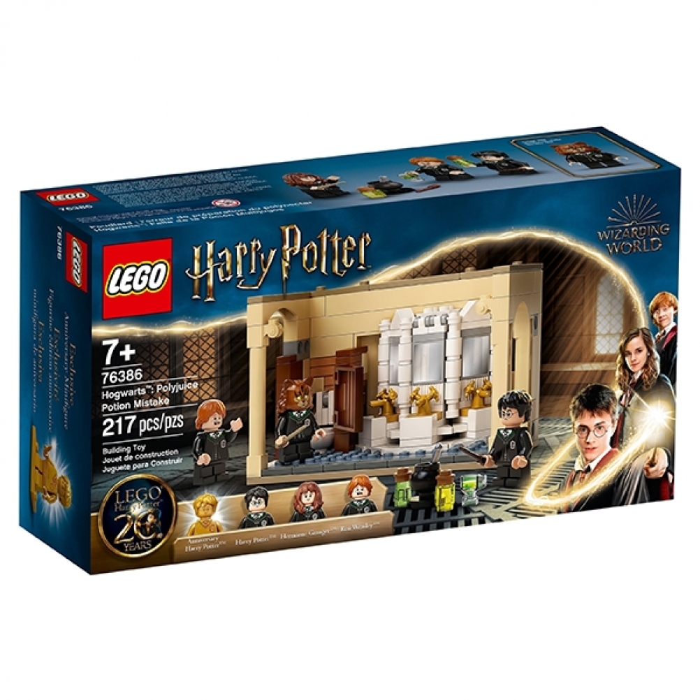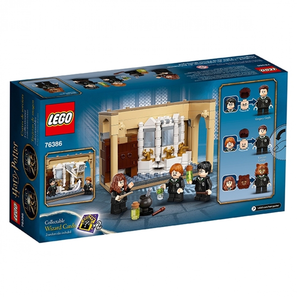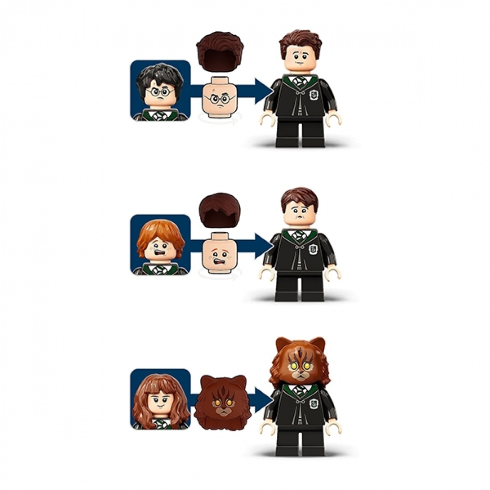 I giovani maghi e le giovani streghe preparano la potente pozione polisucco insieme a Harry Potter, Ron Weasley™ ed Hermione Granger™. I personaggi che la bevono si trasformano in Vincent Crabbe e Gregory Goyle con l’aiuto dei bambini che girando le teste delle minifigure rivelano il volto alternativo e aggiungono una capigliatura diversa. La magia però può fare brutti scherzi, come quando Hermione si trasforma in un gatto! Ma le sorprese non finiscono qui: il kit include un’esclusiva minifigure celebrativa di Harry Potter d’oro; 2 tessere a sorpresa delle carte dei maghi da collezionare e un tunnel segreto sotto il lavandino. Quando questo set viene combinato con La Camera dei Segreti di Hogwarts LEGO Harry Potter (76389), il tunnel segreto collega le 2 camere, ampliando ulteriormente le possibilità di gioco. Questo magico sistema modulare consente ai bambini di continuare ad aggiungere stanze per creare un intero modello del Castello di Hogwarts.