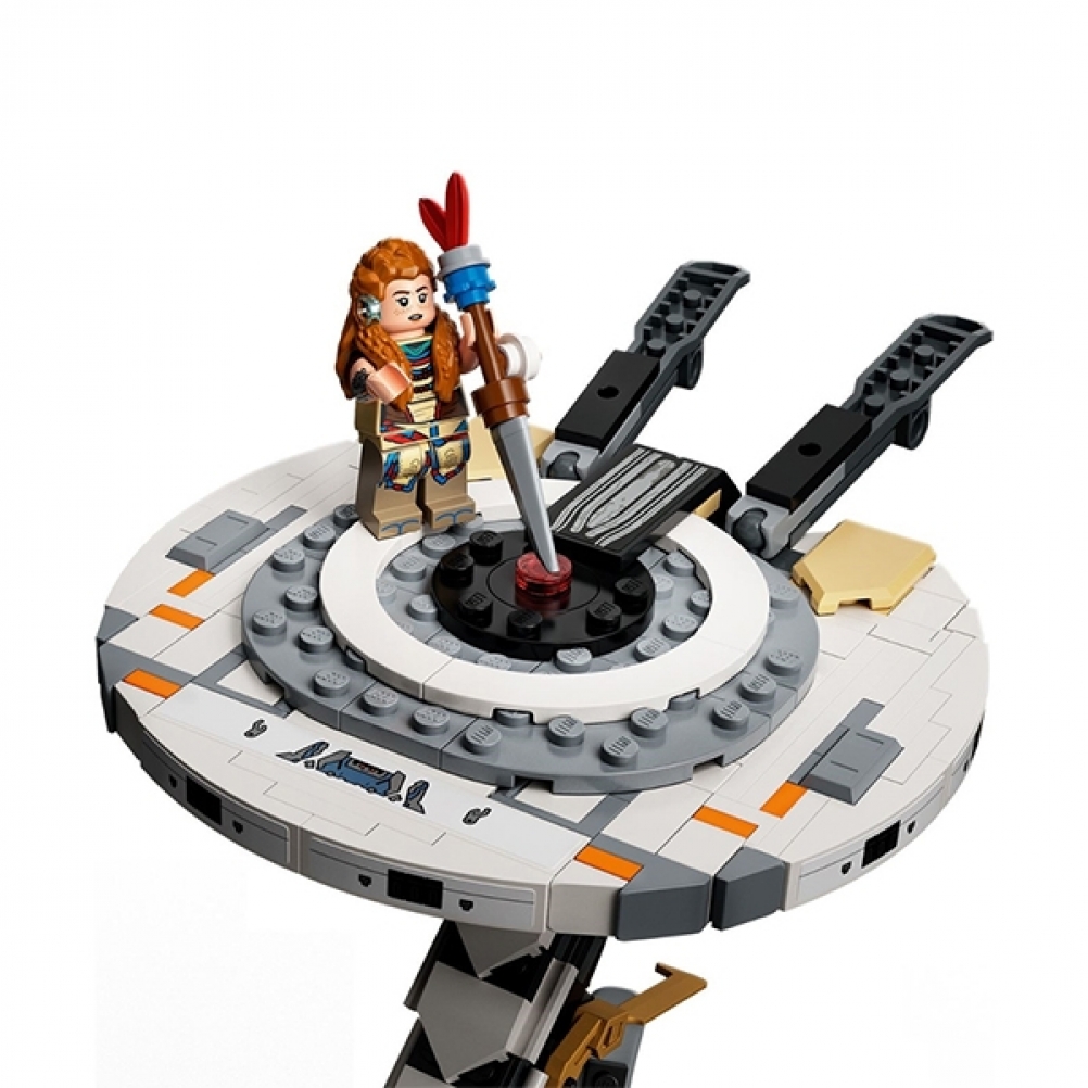 - Aloy e un osservatore: la minifigure LEGO® del personaggio di Aloy di Horizon è dotata di un arco e di una lancia in mattoncini, mentre l’osservatore è fornito con una selezione di occhi blu, gialli o rossi