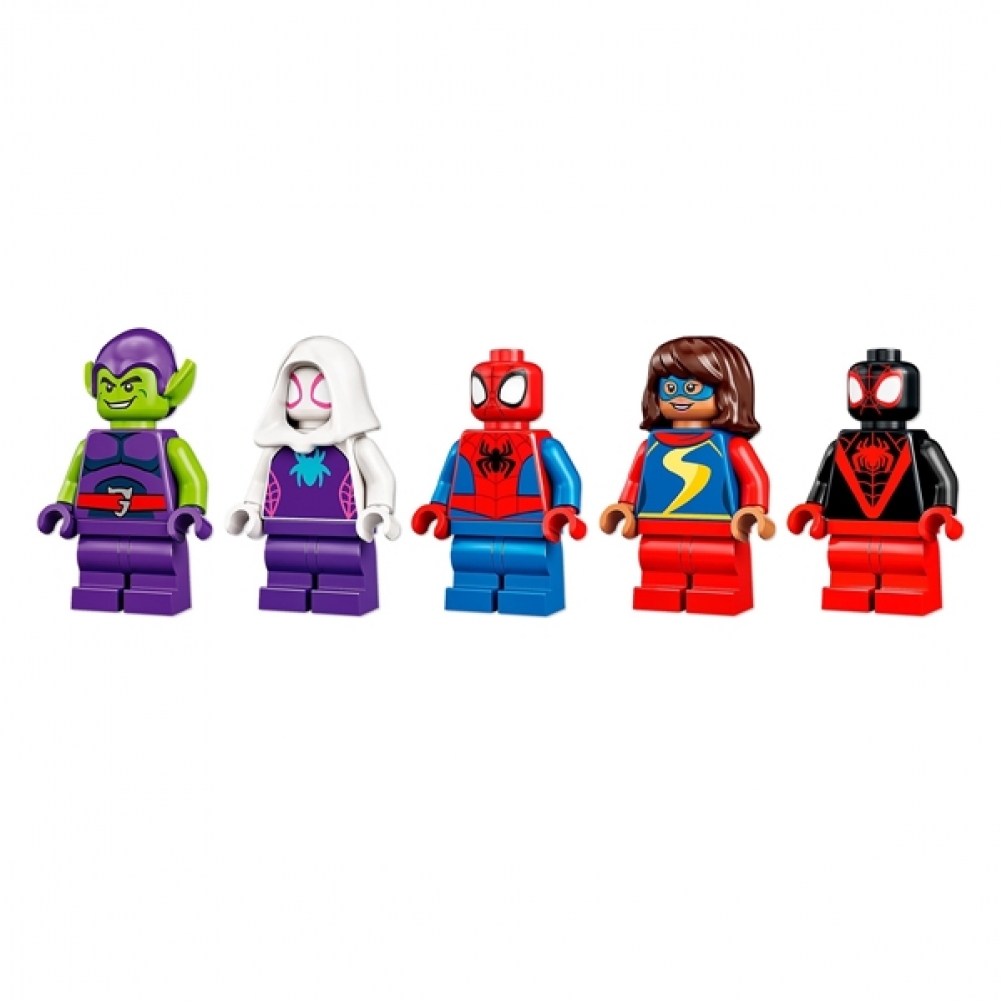 - Un cast stellare di supereroi: il set include le minifigure di Spider-Man, Ghost-Spider, Miles Morales, la Signora Marvel e del super criminale Goblin, oltre a Trace-E, il Ghost-Copter e l’auto 2 in 1 di Goblin