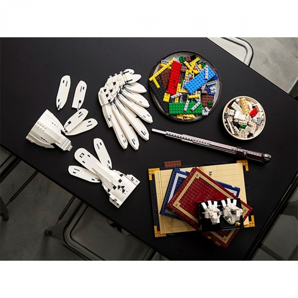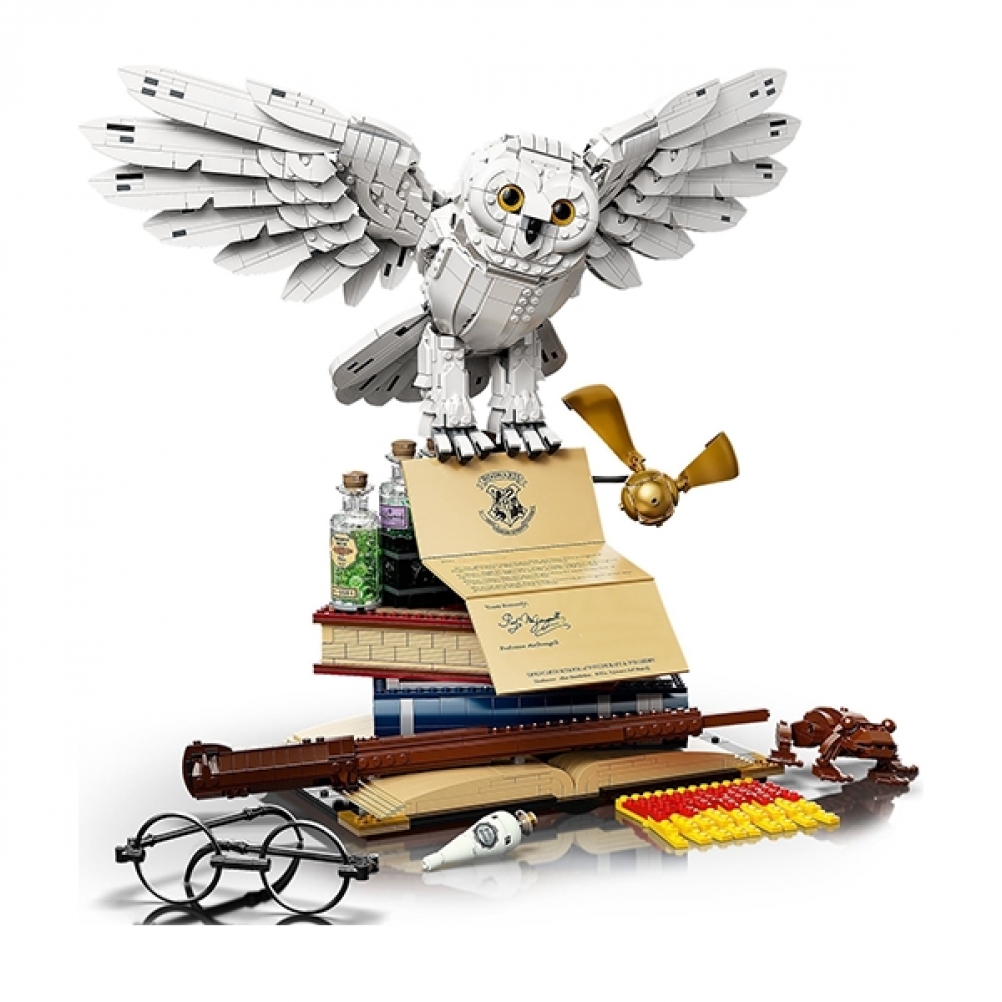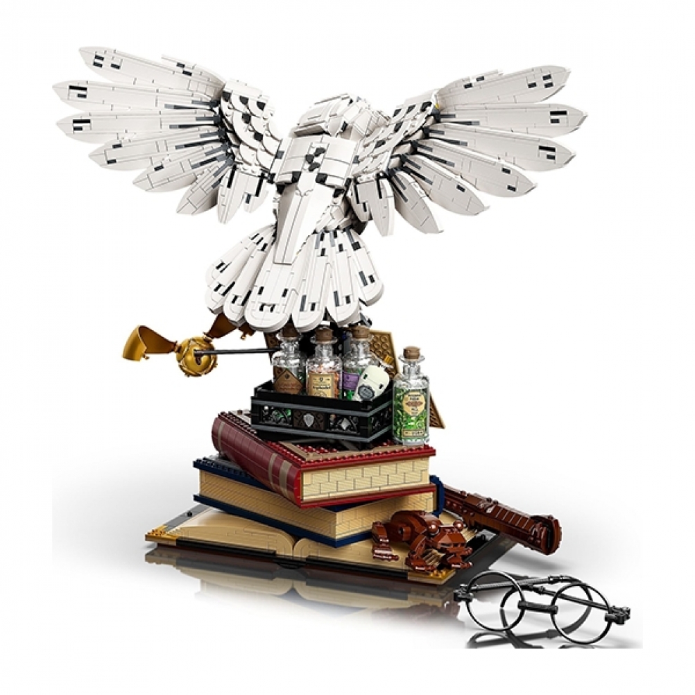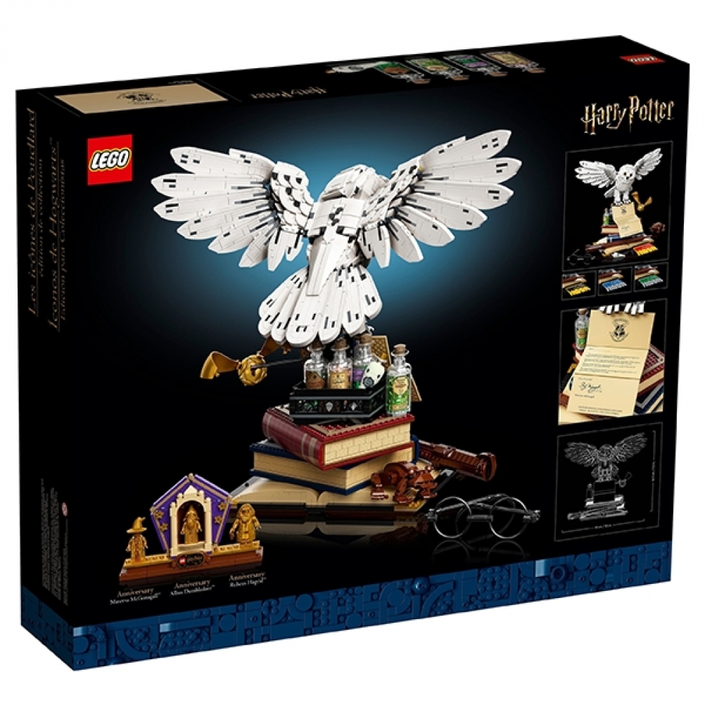 Questo omaggio al magico mondo di Harry Potter è caratterizzato da tanti manufatti rappresentativi, riuniti in un unico straordinario modello. Ci sono la bacchetta e gli occhiali di Harry; la rana di cioccolato di Ron; il vassoio di pozioni di Hermione contenente 5 flaconi di pozioni e ingredienti magici (tra cui l’algabranchia, la “fortuna liquida” Felix Felicis e la Pozione Polisucco); il diario di Tom Riddle; il Boccino d'Oro e una sciarpa della scuola (personalizzabile con i colori di qualsiasi Casa di Hogwarts™). In cima a questo incantevole ensemble c’è la civetta Edvige™ che trasporta un ambitissimo invito Hogwarts. Questo affascinante modello è accompagnato da 3 minifigure d’oro esclusive di Albus Silente™, Minerva McGranitt™ e Rubeus Hagrid™. Inoltre è fornito con un espositore e una tessera decorata che celebra i 20 anni di LEGO Harry Potter.